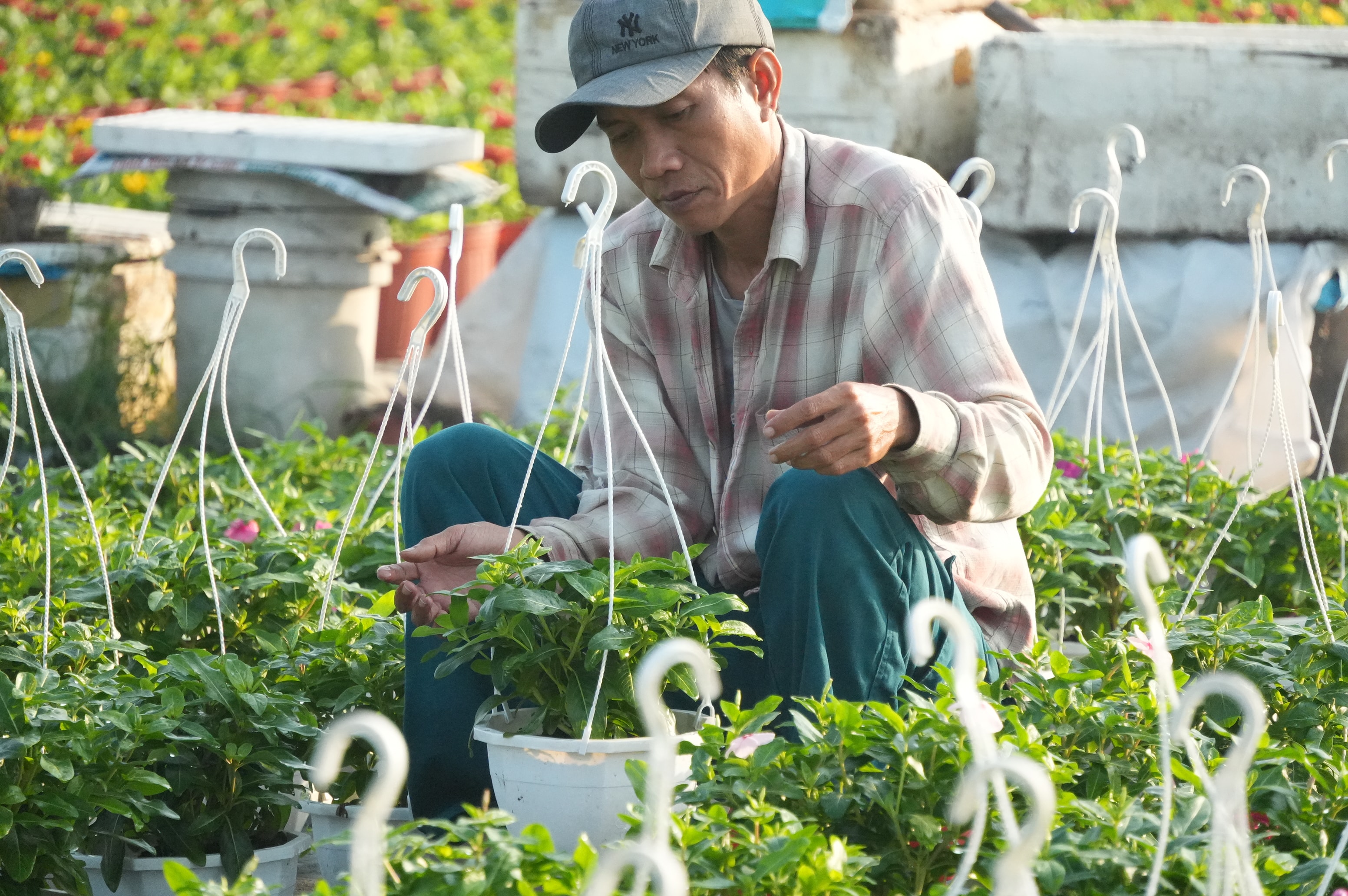 Người dân tất bật với những công đoạn chăm sóc cuối cùng, bảo đảm hoa nở rộ đúng dịp Tết