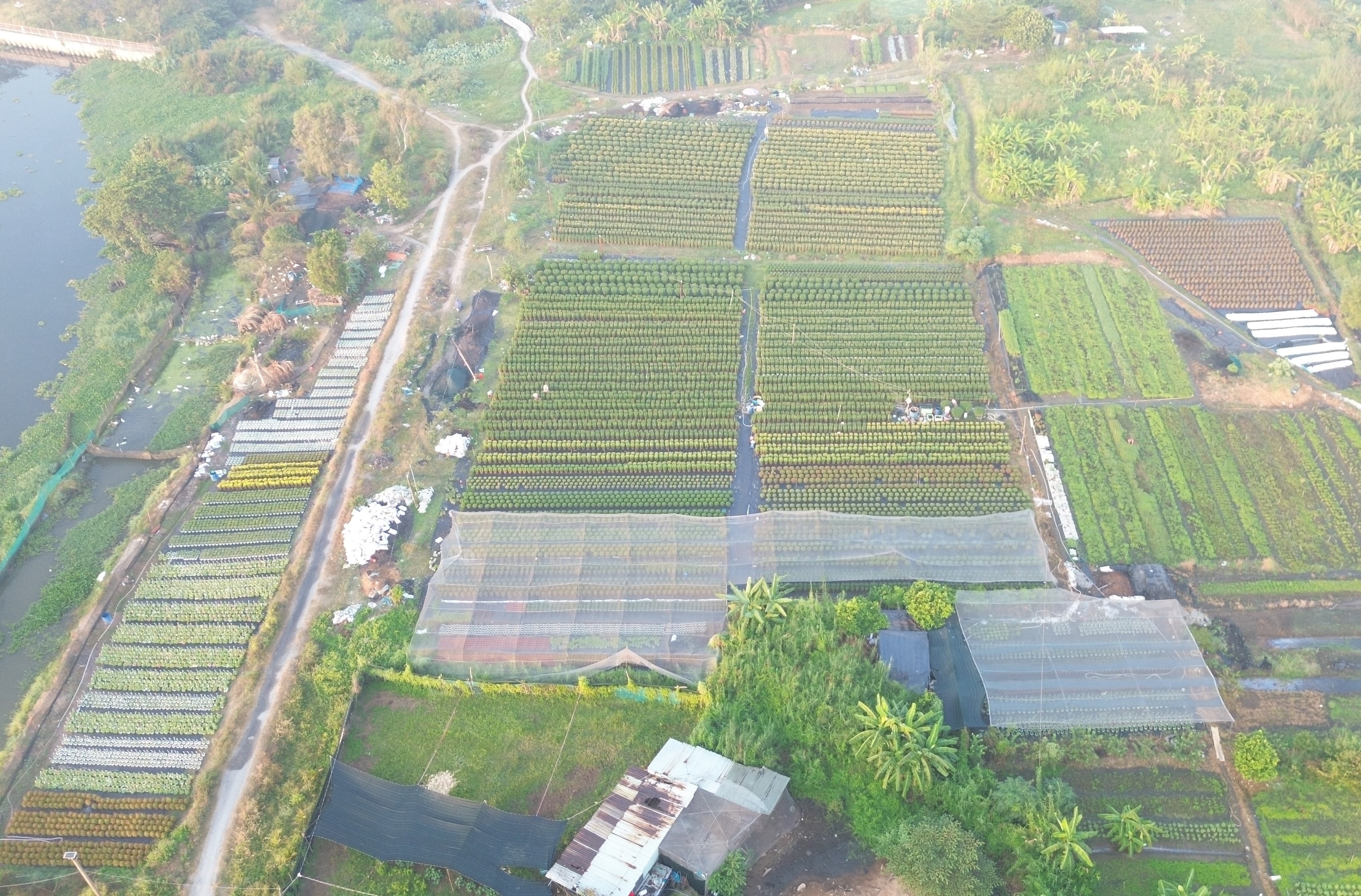 Một góc làng hoa Thới An nhìn từ trên cao