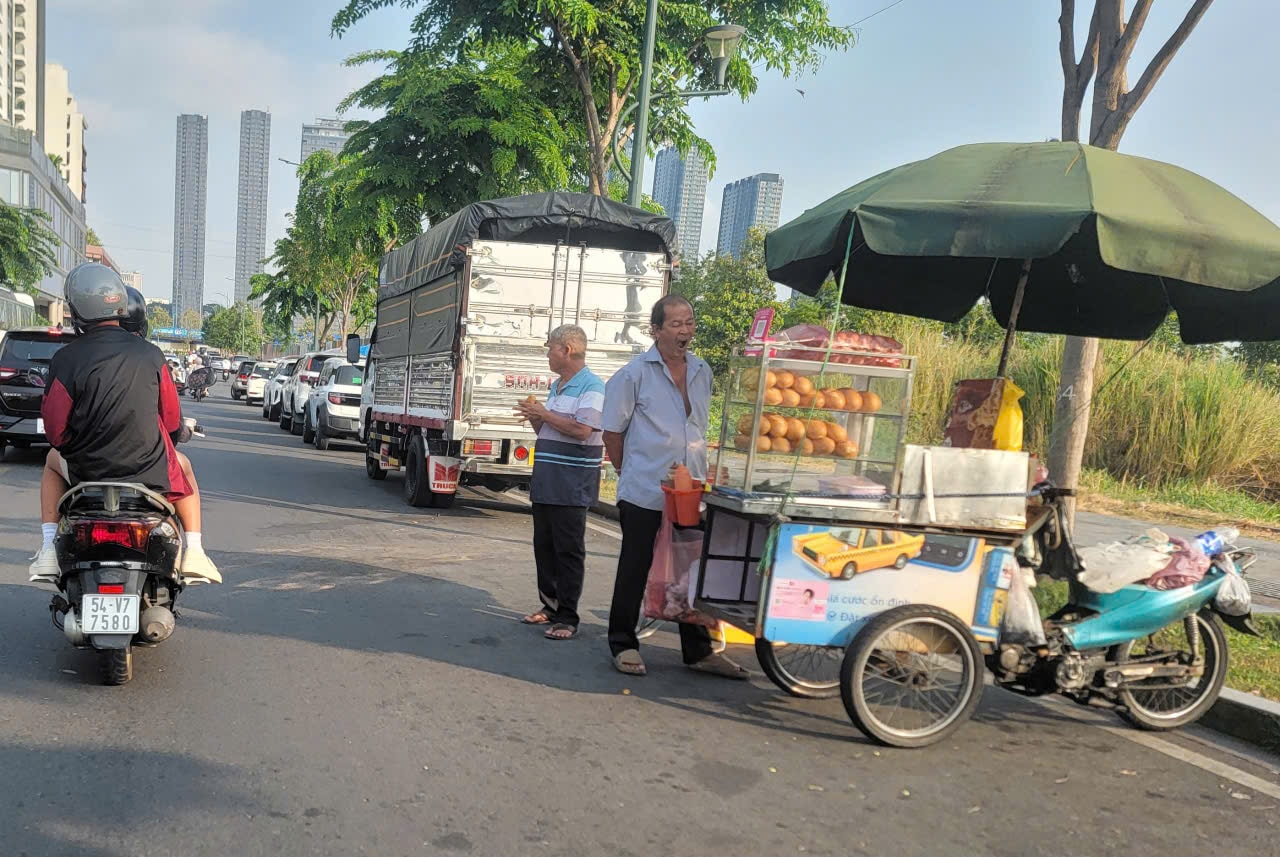 Xe bánh mì được bày bán trên đường Tố Hữu, Khu đô thị mới Thủ Thiêm, phường An Khánh. Ảnh: Quang Phương