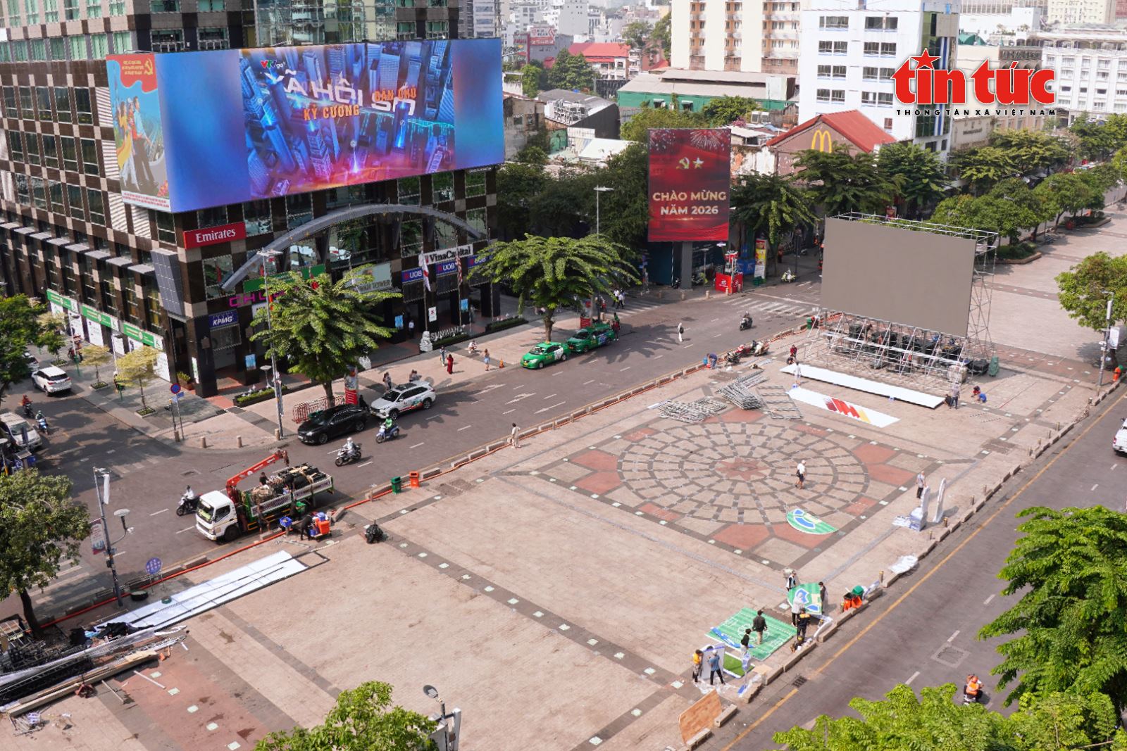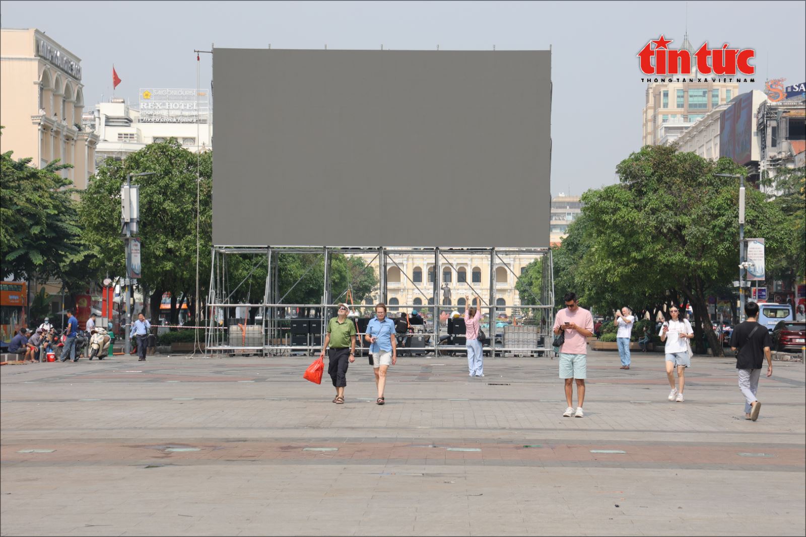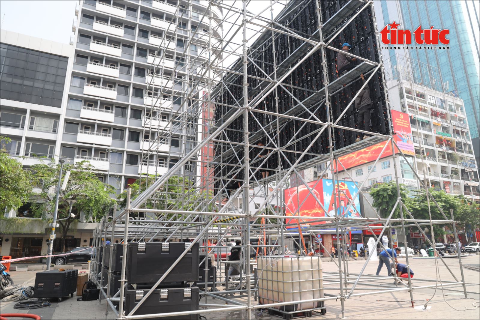 Ngay từ sáng sớm, hàng chục nhân viên kỹ thuật đã có mặt để vận chuyển thiết bị và lắp ráp các khung sắt định hình. Tại khu vực trung tâm phố đi bộ Nguyễn Huệ, các khối màn hình LED chất lượng cao đang được ghép nối cẩn thận nhằm đảm bảo hình ảnh sắc nét và sống động nhất cho "bữa tiệc" bóng đá ngoài trời.