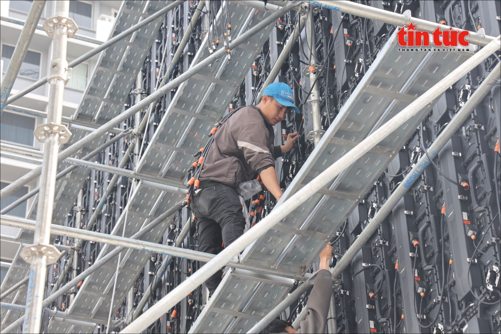 Song song với công tác lắp đặt, các nhân viên ngành điện lực cũng tích cực kiểm tra hệ thống trạm biến áp, triển khai đường dây cáp nguồn và bố trí các máy phát điện dự phòng. Việc đảm bảo nguồn điện thông suốt và an toàn tuyệt đối trong suốt thời gian diễn ra sự kiện được đơn vị tổ chức đặt lên hàng đầu, sẵn sàng phục vụ hàng ngàn người hâm mộ dự kiến sẽ đổ về đây.