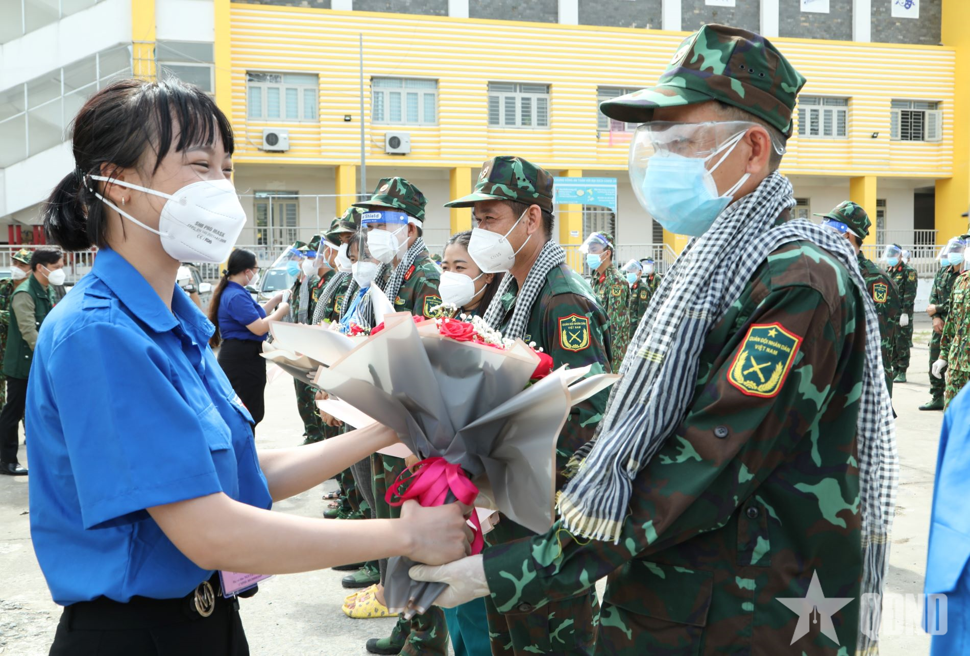 Đoàn viên, thanh niên TP Hồ Chí Minh tặng hoa cán bộ, chiến sĩ Sư đoàn 9 (Quân đoàn 4, nay là Quân đoàn 34) sau khi hoàn thành nhiệm vụ hỗ trợ Thành phố trong đại dịch Covid-19 (năm 2021).