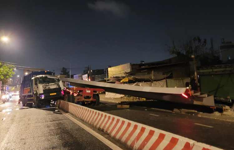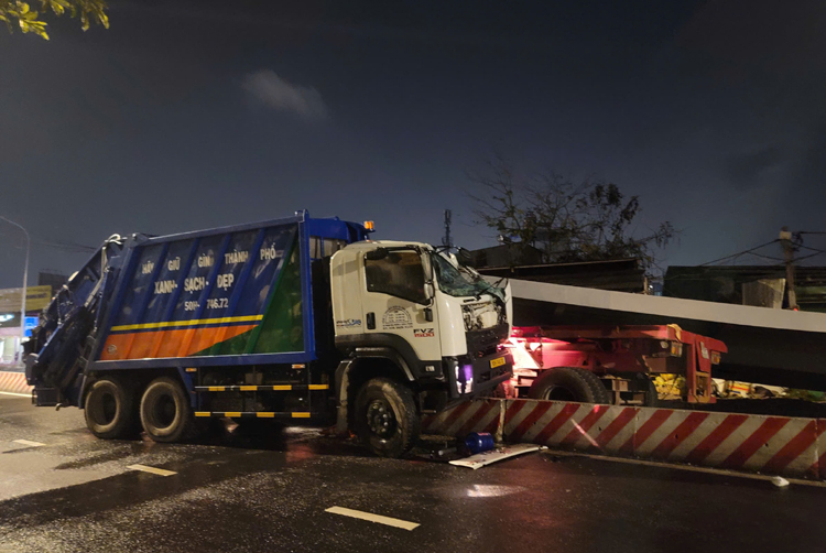 Trước đó, khoảng 1 giờ sáng cùng ngày, xe đầu kéo chở tấm thép hình lưỡi liềm (dùng làm dầm cầu) lưu thông từ phường Tân Hưng về phường Khánh Hội (TP Hồ Chí Minh). Khi đến khu vực chân cầu Kênh Tẻ, phương tiện này va chạm với xe tải chở rác đi chiều ngược lại.