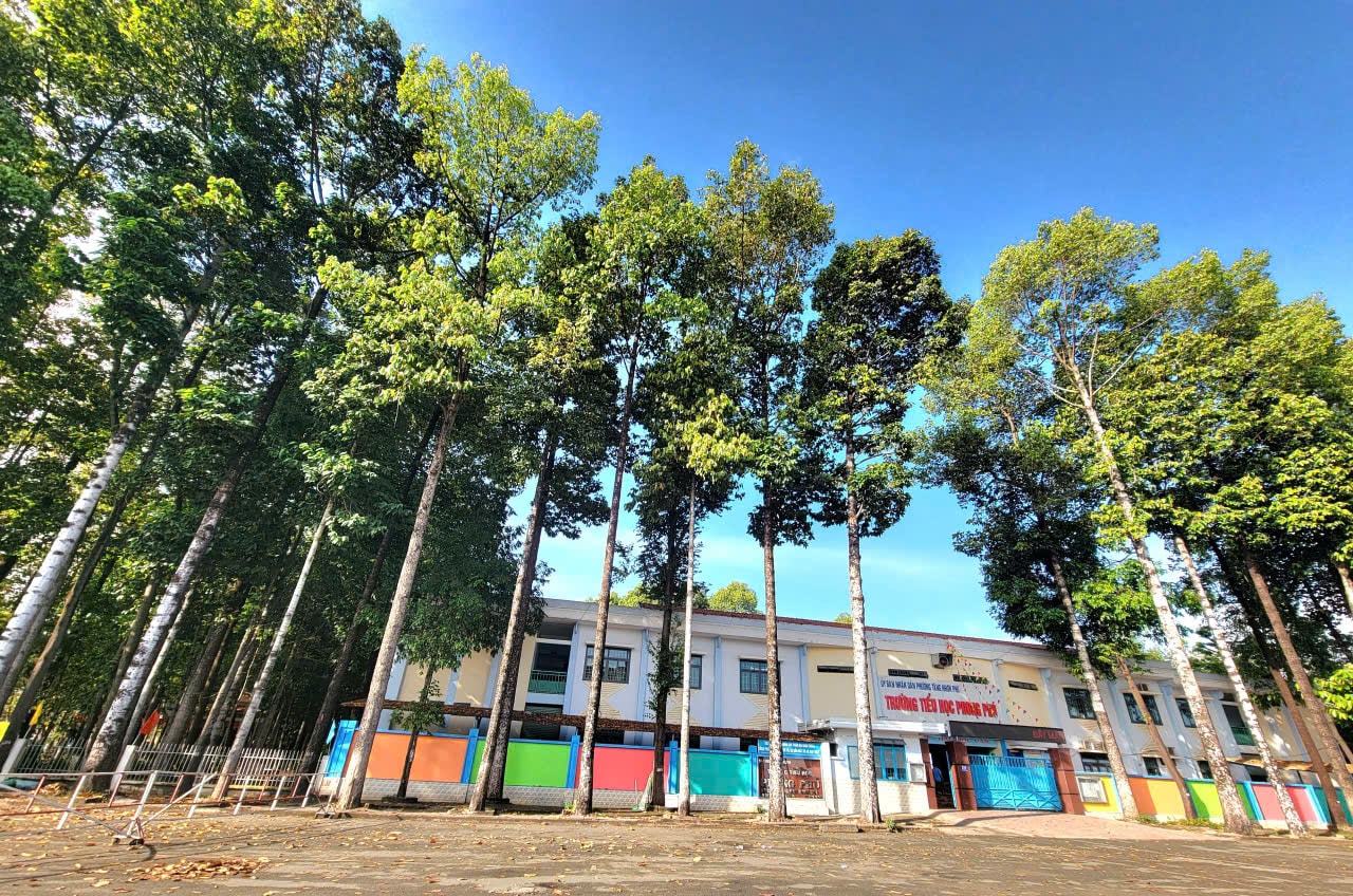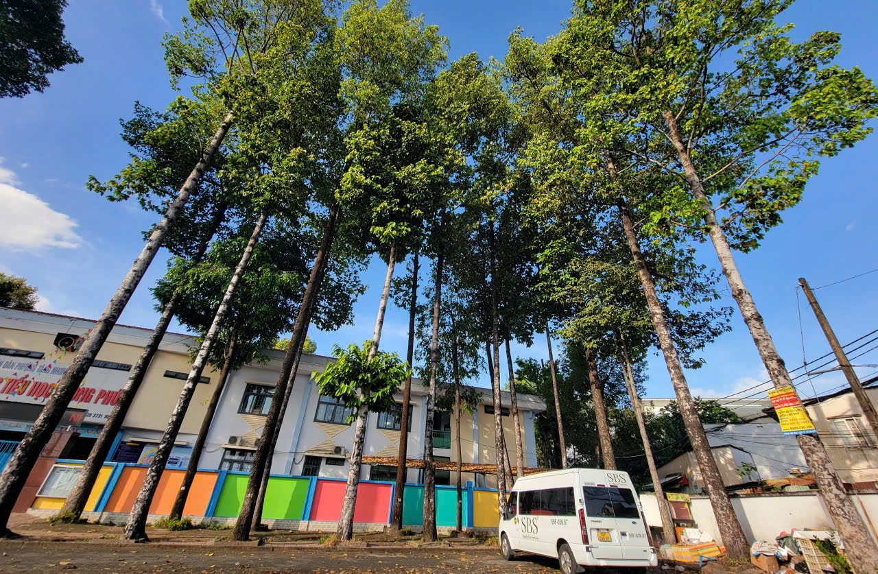 Cây xanh phân tán trước Trường Tiểu học Phong Phú, phường Tăng Nhơn Phú. Ảnh: Quang Phương