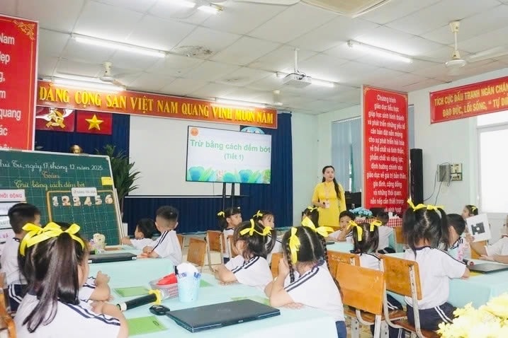 Tại tiết học “Trừ bằng cách đếm bớt” có ứng dụng AI với học sinh lớp 1/5, Trường Tiểu học Hồ Thị Kỷ