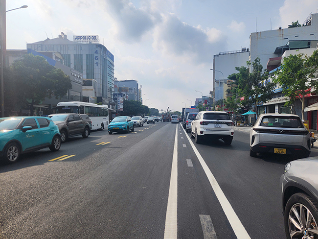 Những ngày qua, đoạn từ cầu vượt Hoàng Hoa Thám đến gần đường C12 đã cơ bản hoàn tất việc thảm nhựa và sơn kẻ vạch đường. Mặt đường thông thoáng giúp các phương tiện lưu thông thuận lợi hơn, giảm tình trạng ùn ứ như trước.