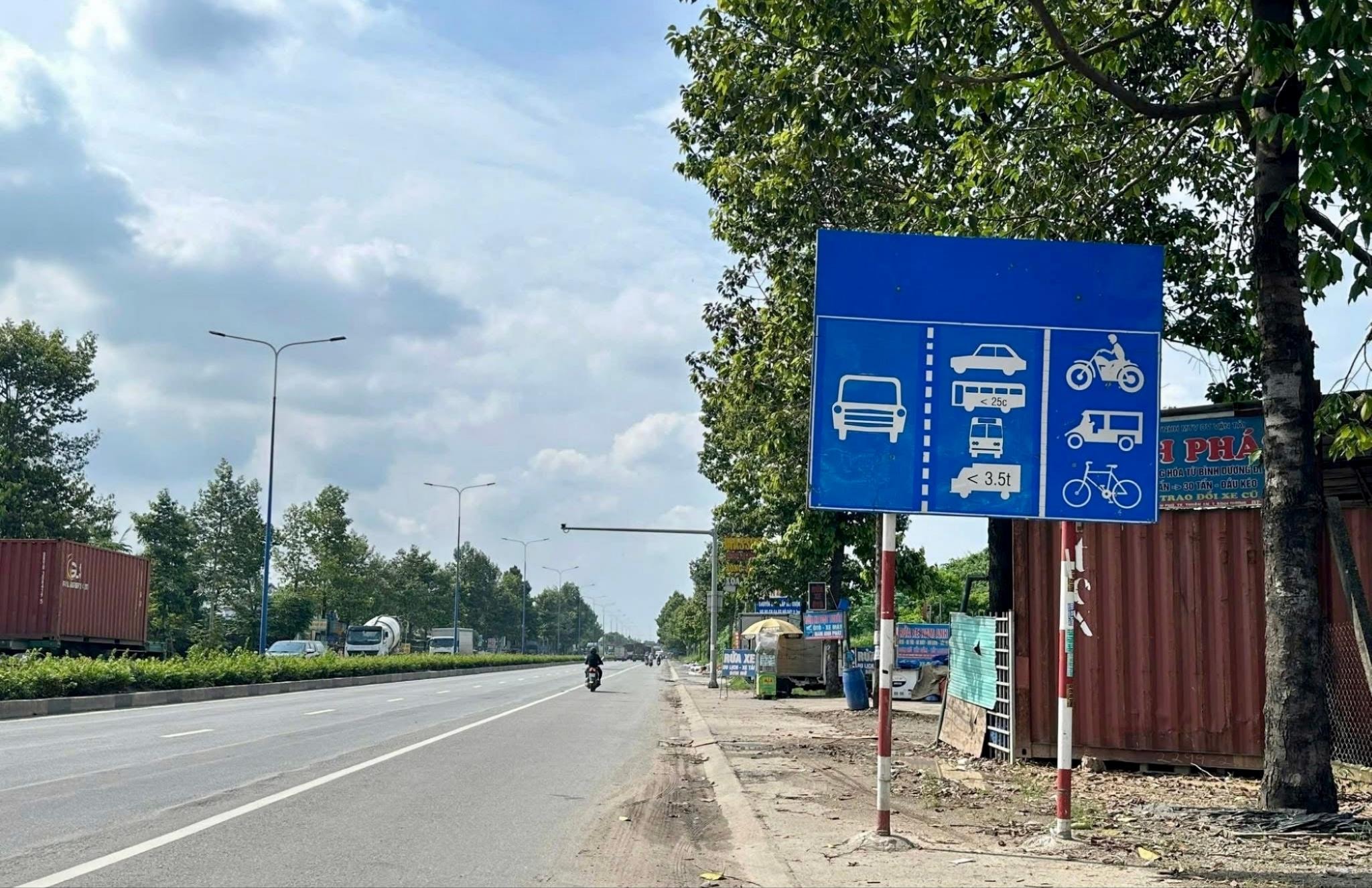Biển báo phân làn trên đường Mỹ Phước - Tân Vạn đã được thay đổi. Ảnh: Văn Dũng