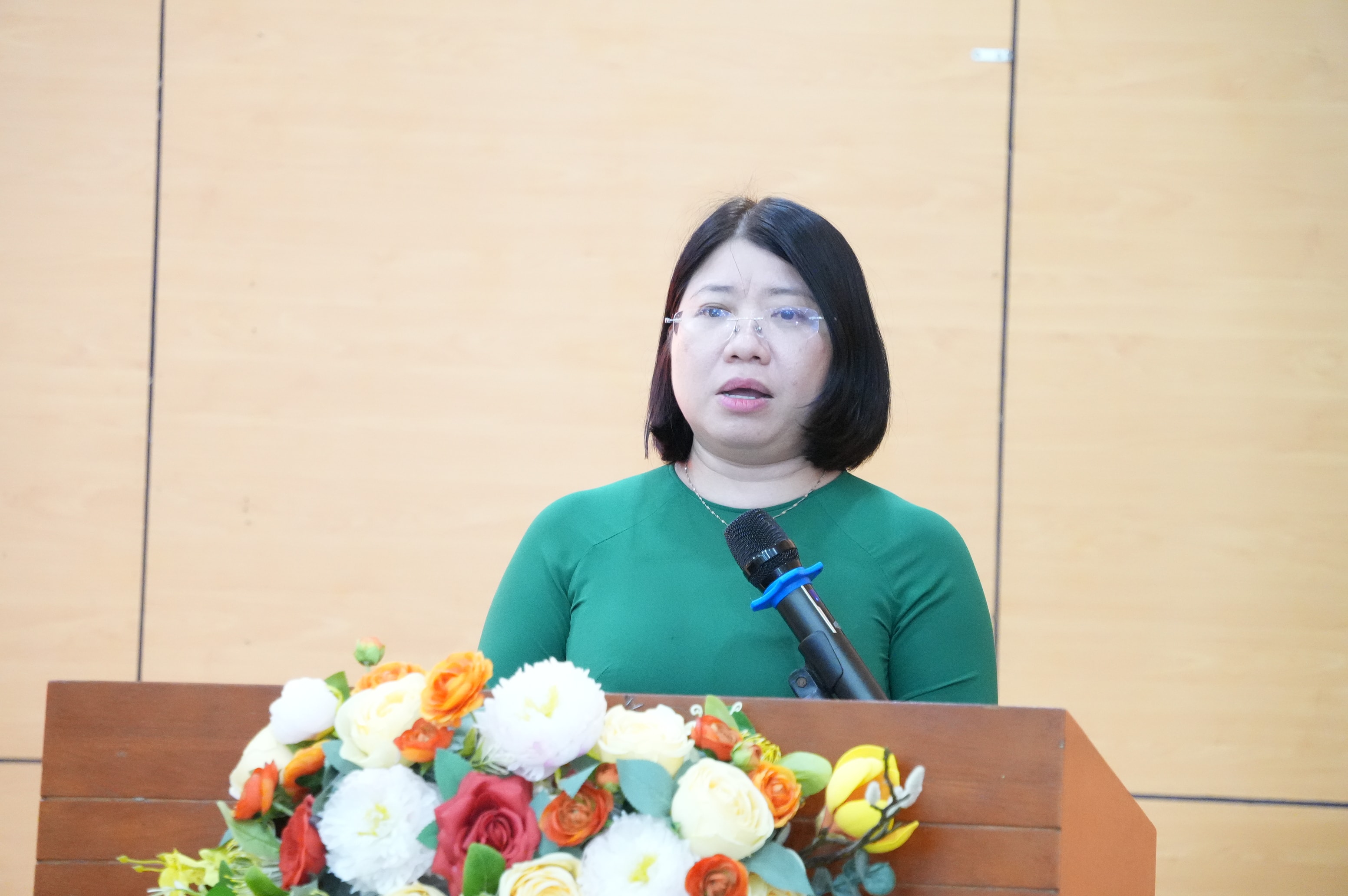 Bí thư Đảng ủy phường Đông Hưng Thuận Trần Thị Huyền Thanh phát biểu tại hội nghị. Ảnh: Thạc Hiếu.