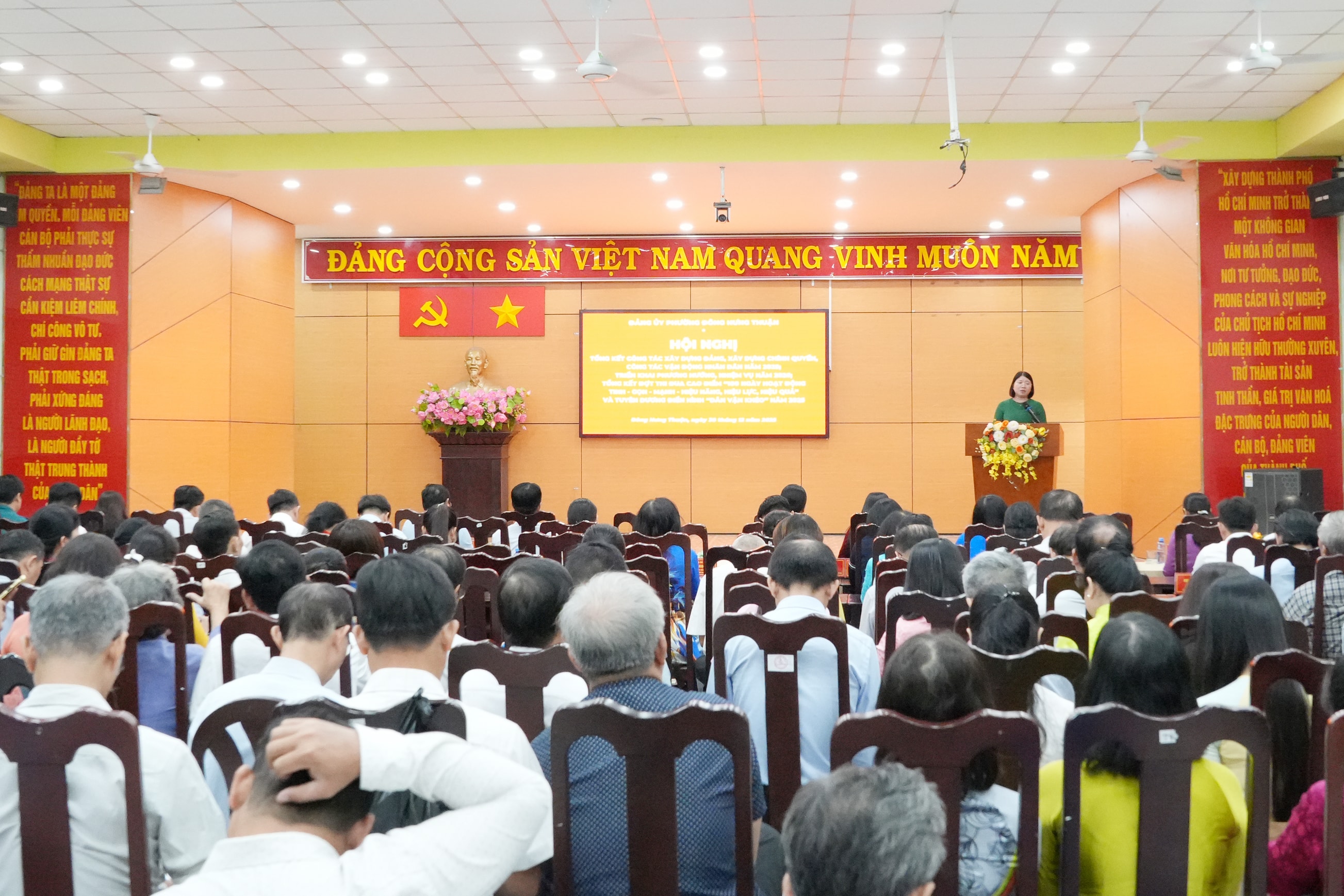 Hội nghị tổng kết công tác xây dựng Đảng, xây dựng chính quyền, công tác vận động Nhân dân năm 2025 tại phường Đông Hưng Thuận. Ảnh: Thạc Hiếu.