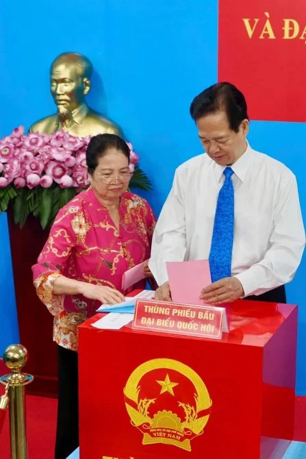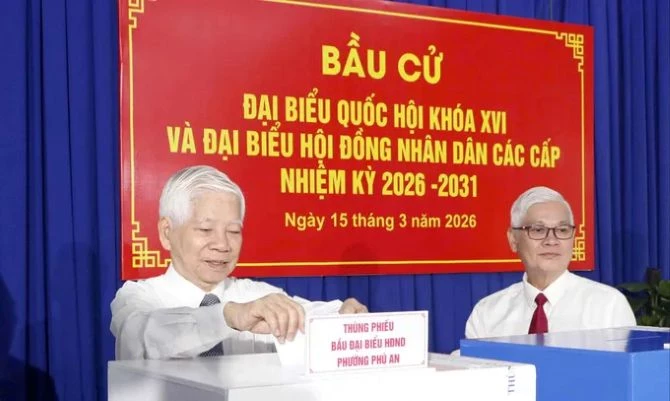 Nguyên Thủ tướng Chính phủ Nguyễn Tấn Dũng bỏ phiếu bầu đại biểu Quốc hội khóa XVI và đại biểu HĐND các cấp nhiệm kỳ 2026 - 2031 tại khu vực bỏ phiếu số 2, Trường Mầm non Tuổi Thơ 7, phường Xuân Hòa, sáng 15/3/2026.