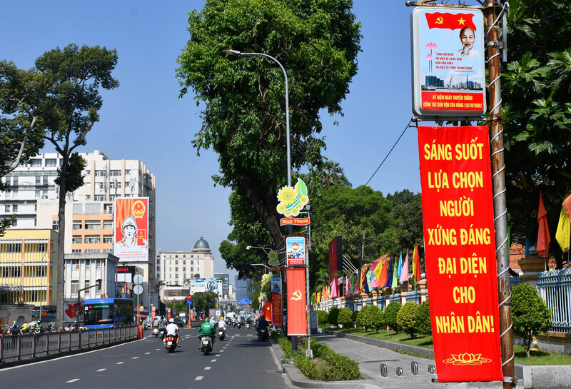 Với sự chuẩn bị chu đáo, cùng không khí rộn ràng trên khắp phố phường, TP. Hồ Chí Minh đã sẵn sàng cho ngày hội lớn của toàn dân, nơi mỗi lá phiếu thể hiện quyền làm chủ và trách nhiệm của cử tri đối với sự phát triển của đất nước. Ảnh: Thanh Minh.