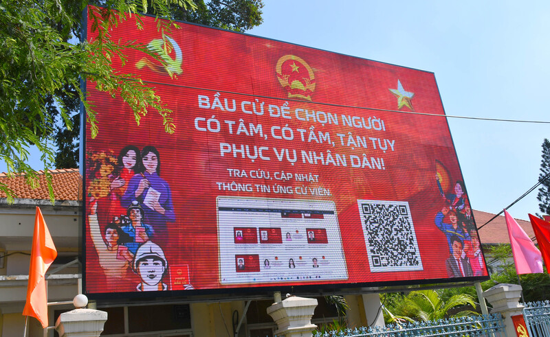 Công tác tuyên truyền về bầu cử được triển khai đồng bộ từ trung tâm thành phố đến các phường, xã TP. Hồ Hồ Chí Minh. Ảnh: Thanh Minh.