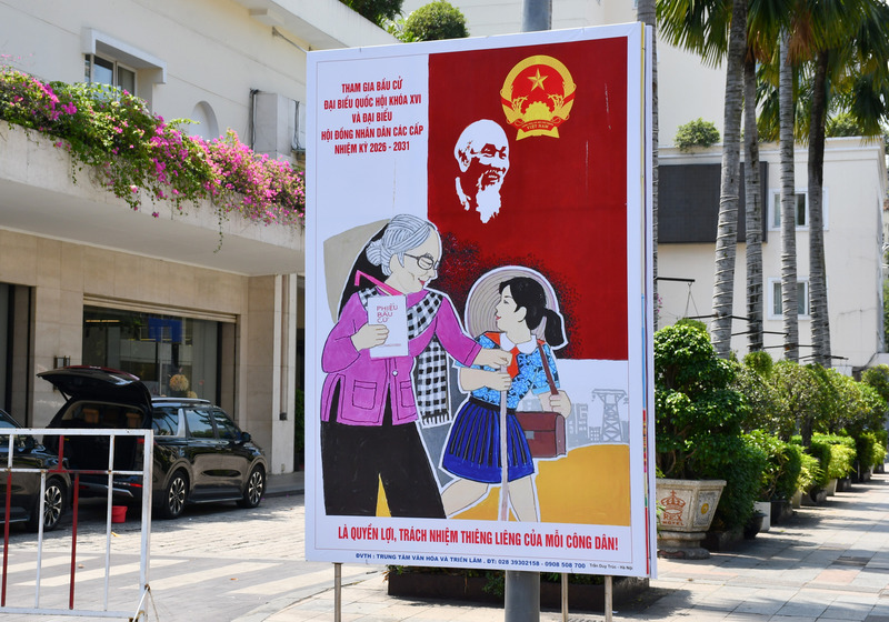 Trên các trục đường chính, cờ đỏ sao vàng tung bay phấp phới. Nhiều cụm pano, áp phích, băng rôn tuyên truyền về quyền và nghĩa vụ của cử tri được treo trang trọng trước trụ sở cơ quan, trường học, khu dân cư và tại các khu vực bỏ phiếu. Tất cả tạo nên bức tranh sinh động, thể hiện tinh thần trách nhiệm và niềm tin của người dân vào ngày hội lớn của đất nước.