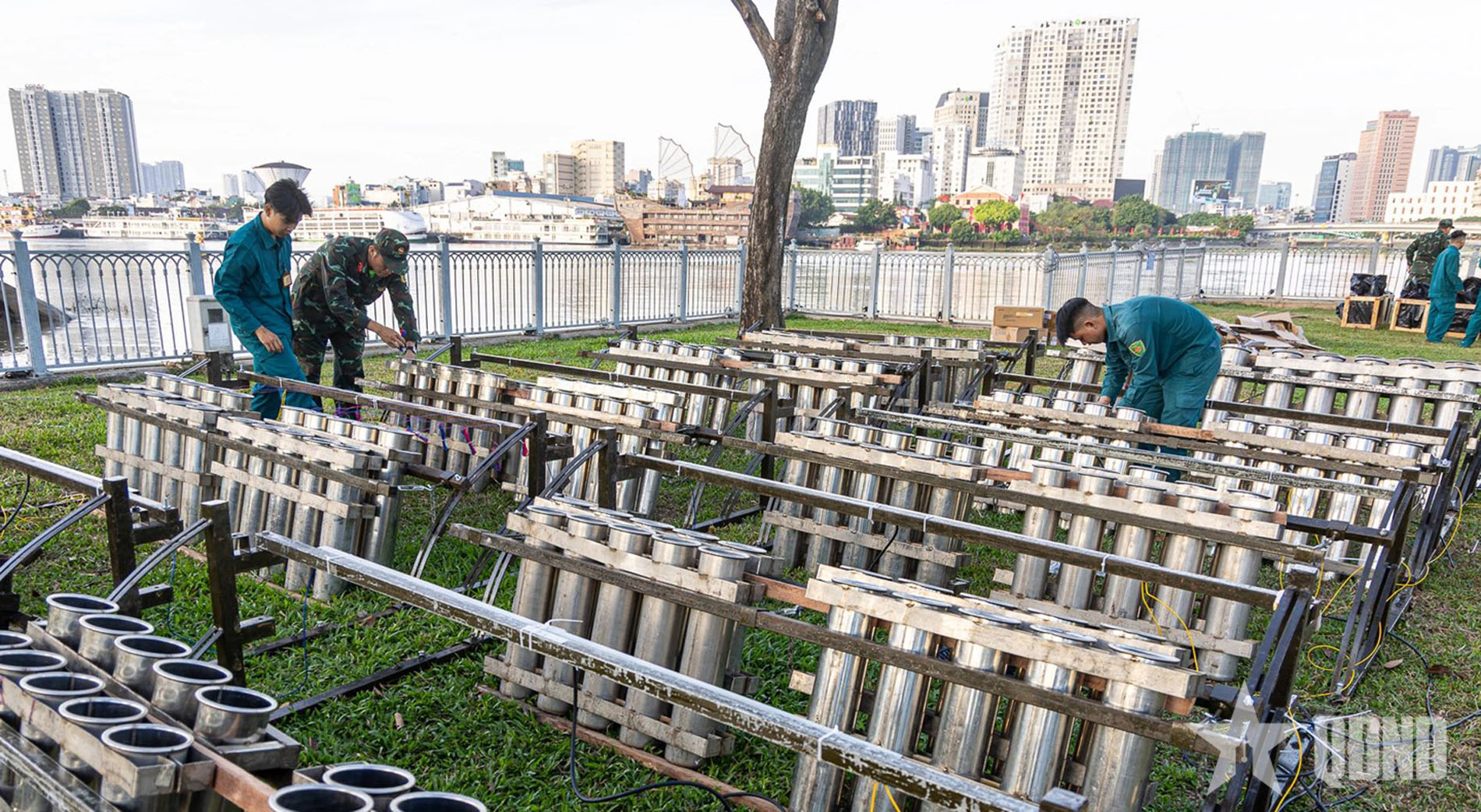 Tại điểm bắn ở công viên hầm vượt sông Sài Gòn (phường An Khánh, TP Hồ Chí Minh), Bộ tư lệnh TP Hồ Chí Minh bố trí gần 1.200 quả pháo tầm cao và 70 giàn pháo tầm thấp (trong đó có 10 giàn hỏa thuật). Toàn bộ hệ thống được vận hành tự động, bảo đảm nhịp bắn chính xác, hiệu ứng đồng bộ và giảm khói.