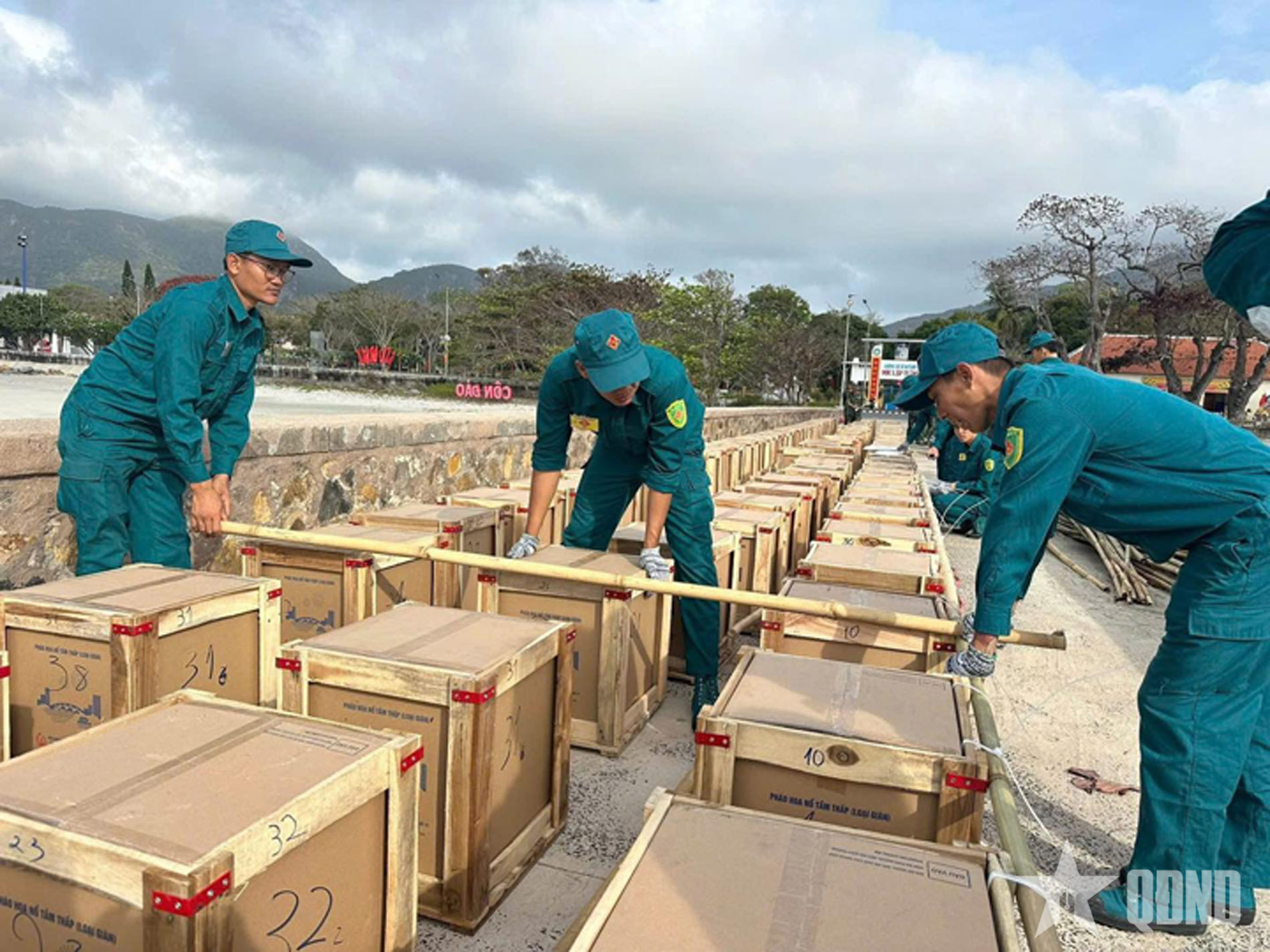 Cán bộ, chiến sĩ cùng lực lượng dân quân tự vệ lắp đặt, kiểm tra kỹ thuật theo đúng phương án, kỹ thuật được phê duyệt, bảo đảm an toàn tuyệt đối.
