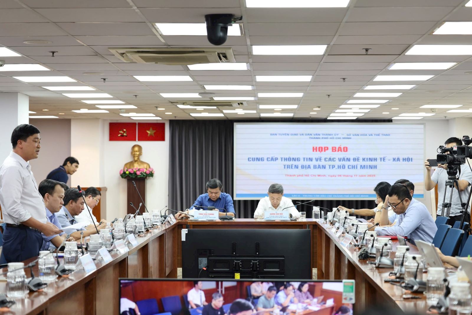 Quang cảnh buổi họp báo cung cấp thông tin về các vấn đề kinh tế - xã hội trên địa bàn TP Hồ Chí Minh vào chiều 6/11.