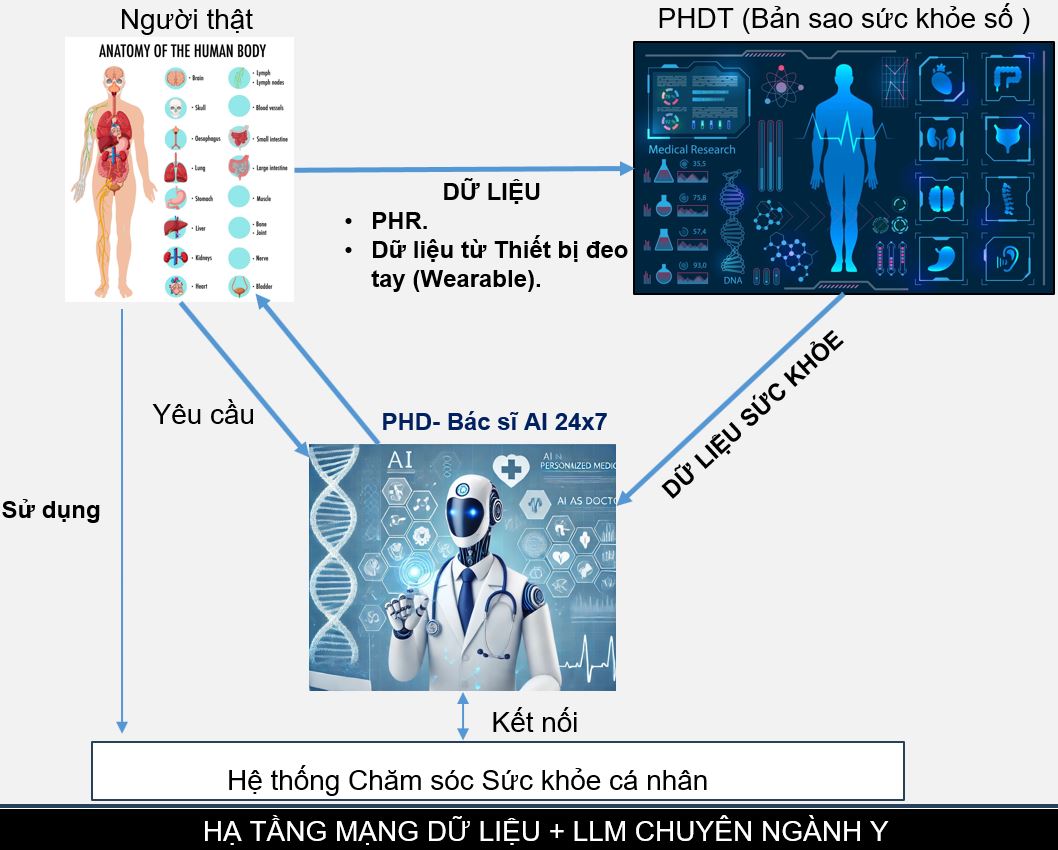 Bên cạnh đó, mô hình “Bác sĩ trí tuệ nhân tạo” (PHD) cũng được giới thiệu như một công cụ hỗ trợ chăm sóc sức khỏe cá nhân. Theo các chuyên gia, hệ thống này có thể hỗ trợ tư vấn, theo dõi và đưa ra cảnh báo về nguy cơ sức khỏe dựa trên dữ liệu thu thập được, qua đó giúp người dùng có thêm thông tin để chủ động phòng ngừa bệnh tật.