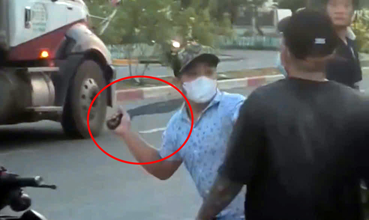 Đối tượng cầm hung khí để giải quyết mâu thuẫn. Ảnh: CA