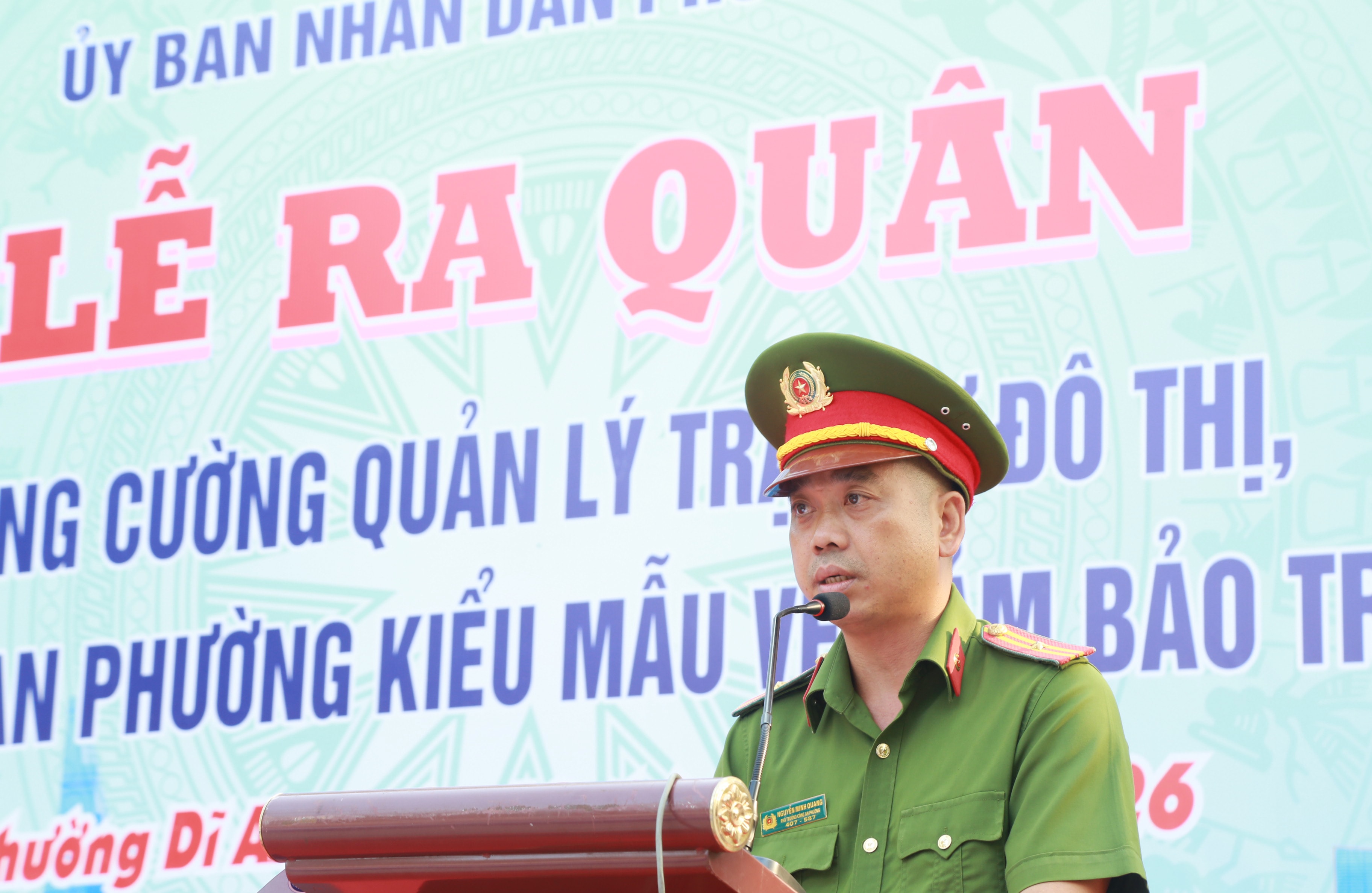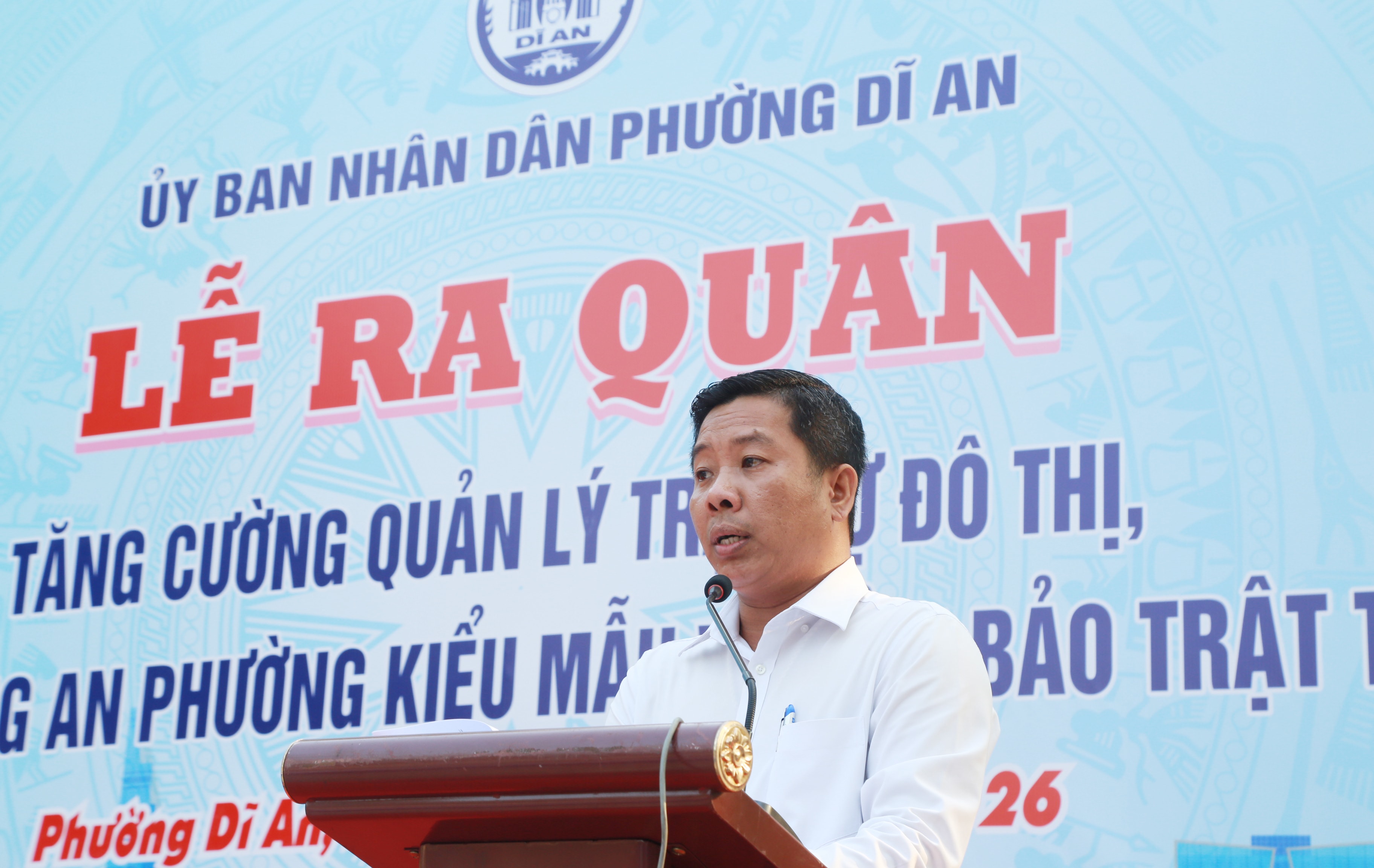 Phường Dĩ An được hình thành trên cơ sở sáp nhập ba phường Dĩ An, An Bình và một phần phường Tân Đông Hiệp, với diện tích hơn 21 km² và dân số trên 93.000 người. Đây là địa bàn có mật độ dân cư cao, tập trung nhiều cơ sở sản xuất, kinh doanh, đặt ra yêu cầu cấp thiết trong quản lý trật tự đô thị.