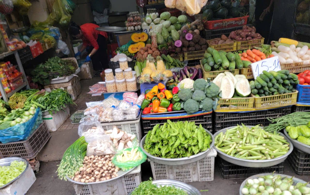 Các loại rau, củ, quả bày bán tại chợ Bình Điền