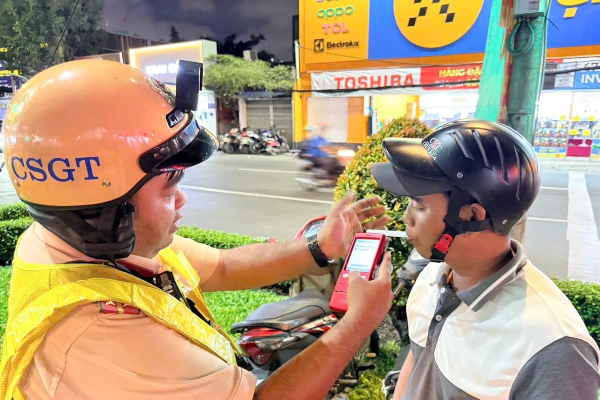 CSGT TP. Hồ Chí Minh kiểm tra nồng độ cồn của người điều khiển phương tiện