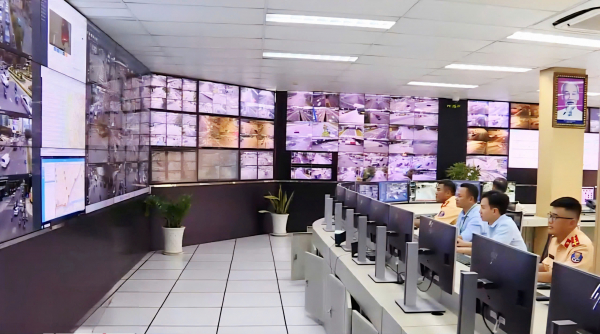 CSGT TP Hồ Chí Minh theo dõi tình hình giao thông qua camera giám sát.