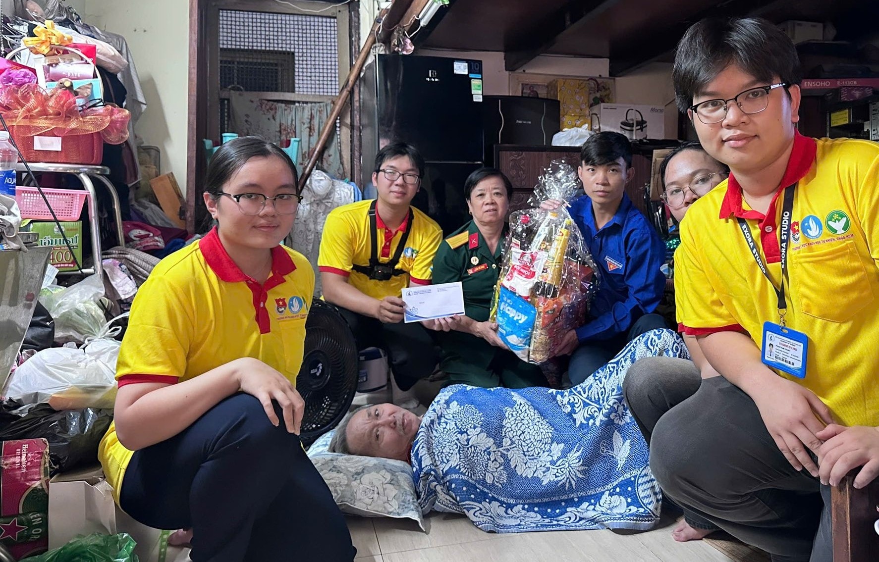 Ngày 25-1, Đoàn phường Cầu Kiệu phối hợp với Khoa Điện tử - Viễn thông (ĐH Khoa học Tự nhiên, Đại học Quốc gia thành phố Hồ Chí Minh), Khoa Kế toán - Kiểm toán, Khoa Thương mại và Du lịch - Trường Đại học Tài chính - Marketing tổ chức chương trình trao quà Tết cho hội viên cựu chiến binh có hoàn cảnh khó khăn trên địa bàn phường. Ảnh: T.An
