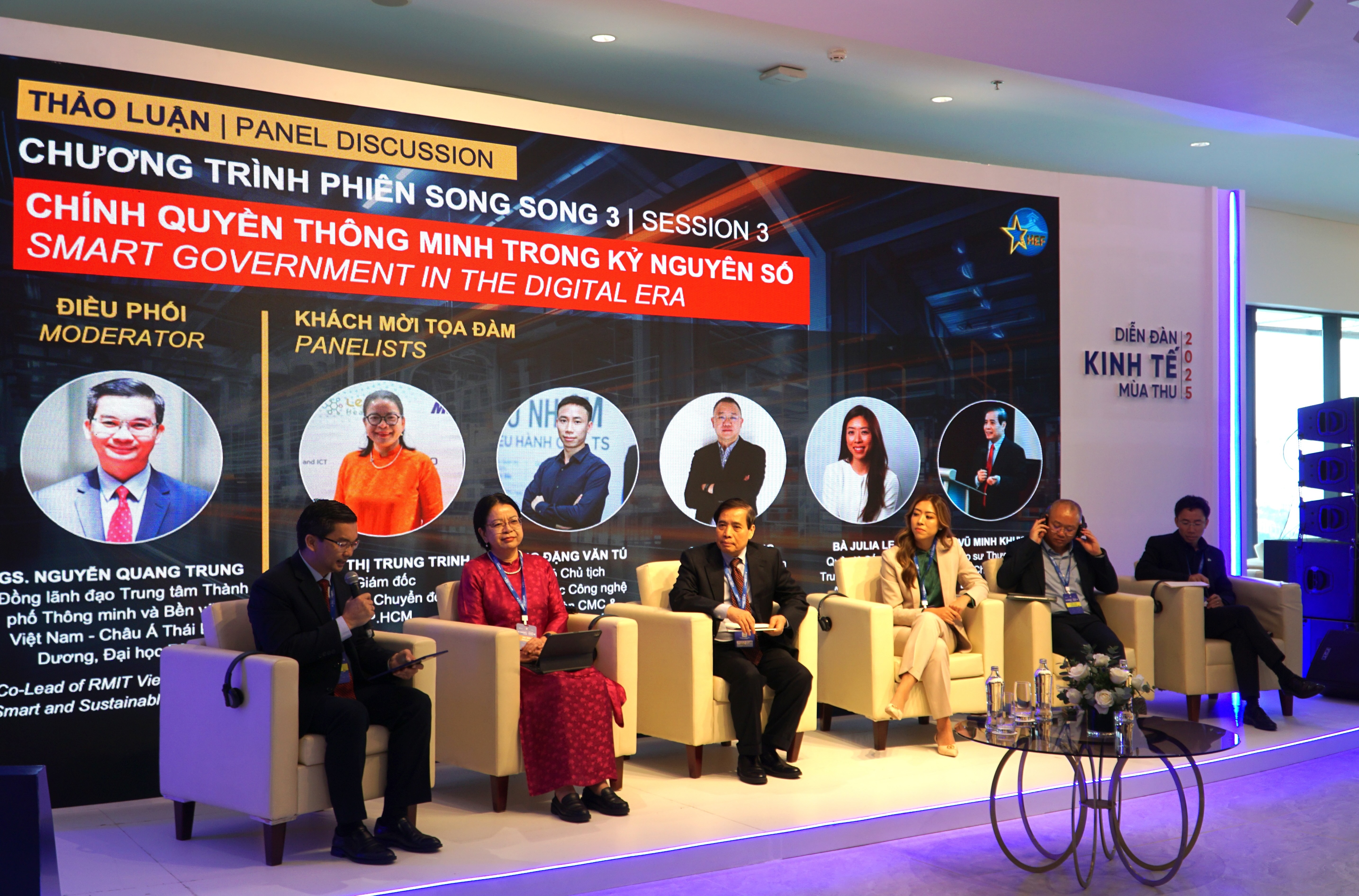 Tại Diễn đàn Kinh tế mùa Thu 2025, phiên tọa đàm Chính quyền thông minh trong kỷ nguyên số do GS. Nguyễn Quang Trung, đồng lãnh đạo Trung tâm Nghiên cứu thành phố thông minh và bền vững (Đại học RMIT Việt Nam) điều phối đã mang đến một bức tranh khá toàn diện, từ dữ liệu, thể chế, hợp tác công - tư, an ninh mạng đến câu chuyện trao quyền cho chính quyền cơ sở.