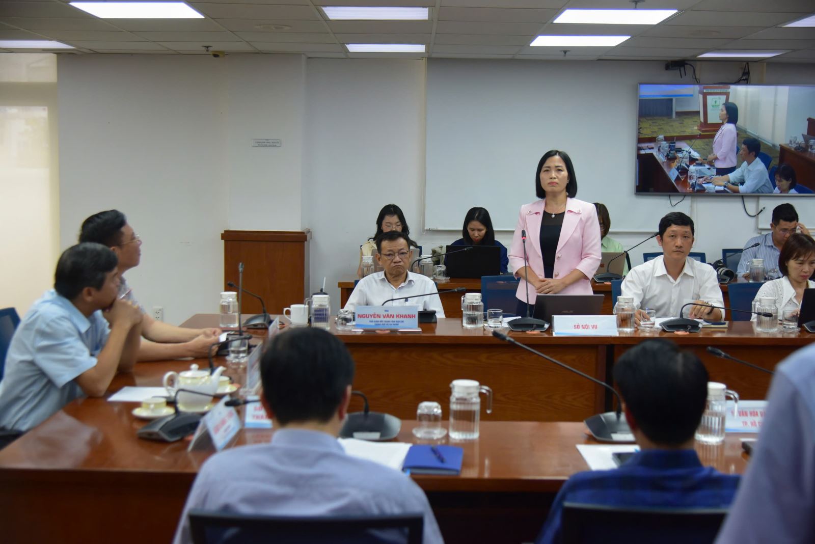 Bà Nguyễn Thị Huệ, Trưởng phòng Cải cách hành chính, Sở Nội vụ TP Hồ Chí Minh trả lời câu hỏi của báo chí vào chiều 26/2.