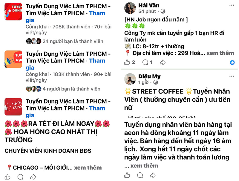 Cùng với đó, các hội nhóm tìm việc trên mạng xã hội hoạt động sôi nổi, lượng bài đăng tuyển dụng dày đặc mỗi ngày, phản ánh rõ xu hướng dịch chuyển việc làm sau Tết.