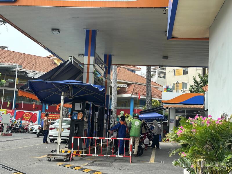 Tại cây xăng trên đường Nguyễn Hồng Thái (phường Bến Thành), lượng phương tiện đổ xăng ra vào tương đối ổn định, thời gian chờ đổ xăng chỉ diễn ra trong vài phút.