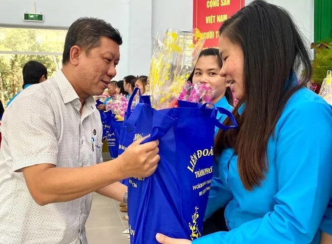 Liên đoàn Lao động thành phố Hồ Chí Minh chăm lo Tết cho người lao động. Ảnh: SGGP
