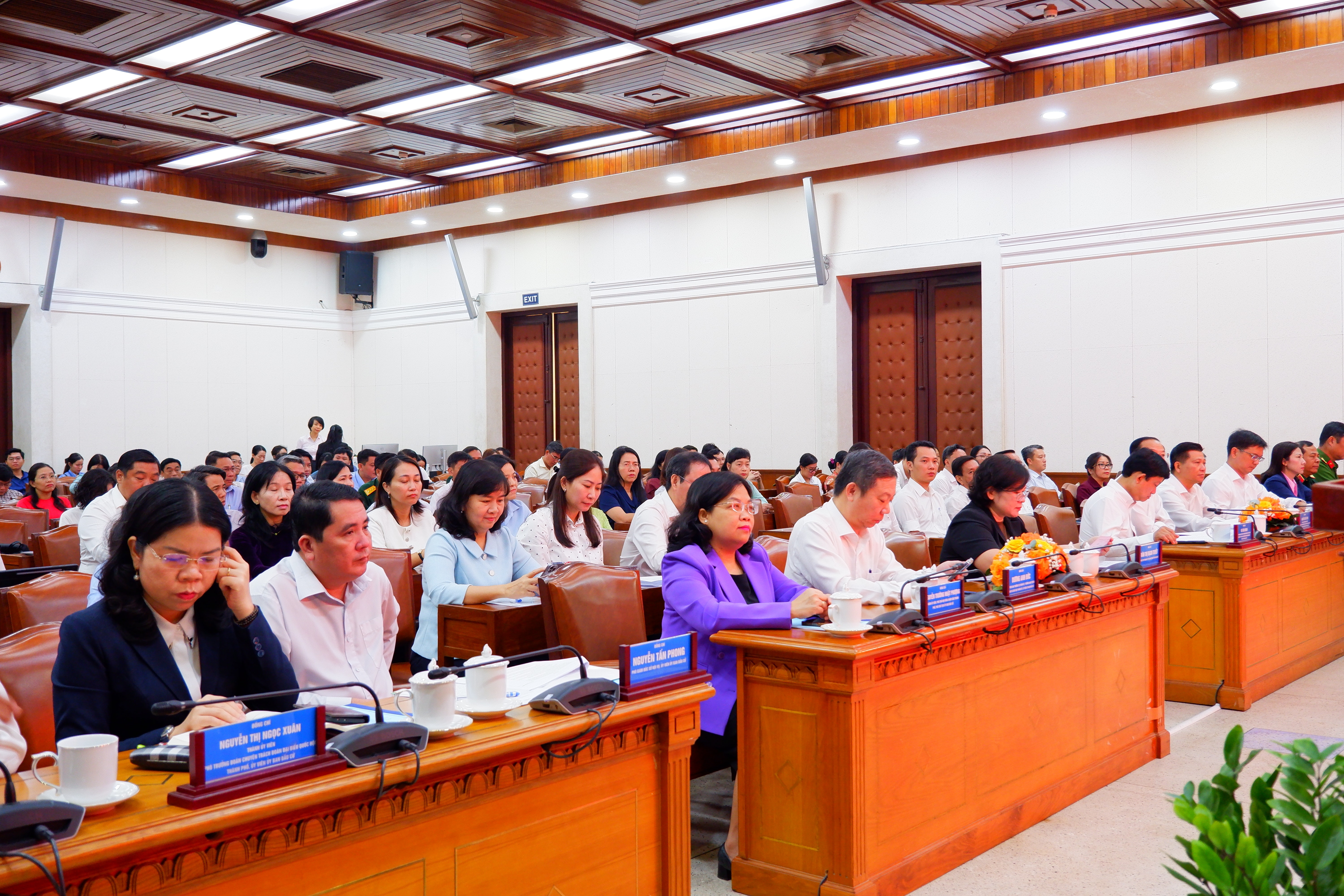 Chủ tịch HĐND, Chủ tịch Ủy ban Bầu cử ĐBQH khóa XVI và đại biểu HĐND TP. Hồ Chí Minh nhiệm kỳ 2026-2031 Võ Văn Minh cùng các đại biểu dự hội nghị