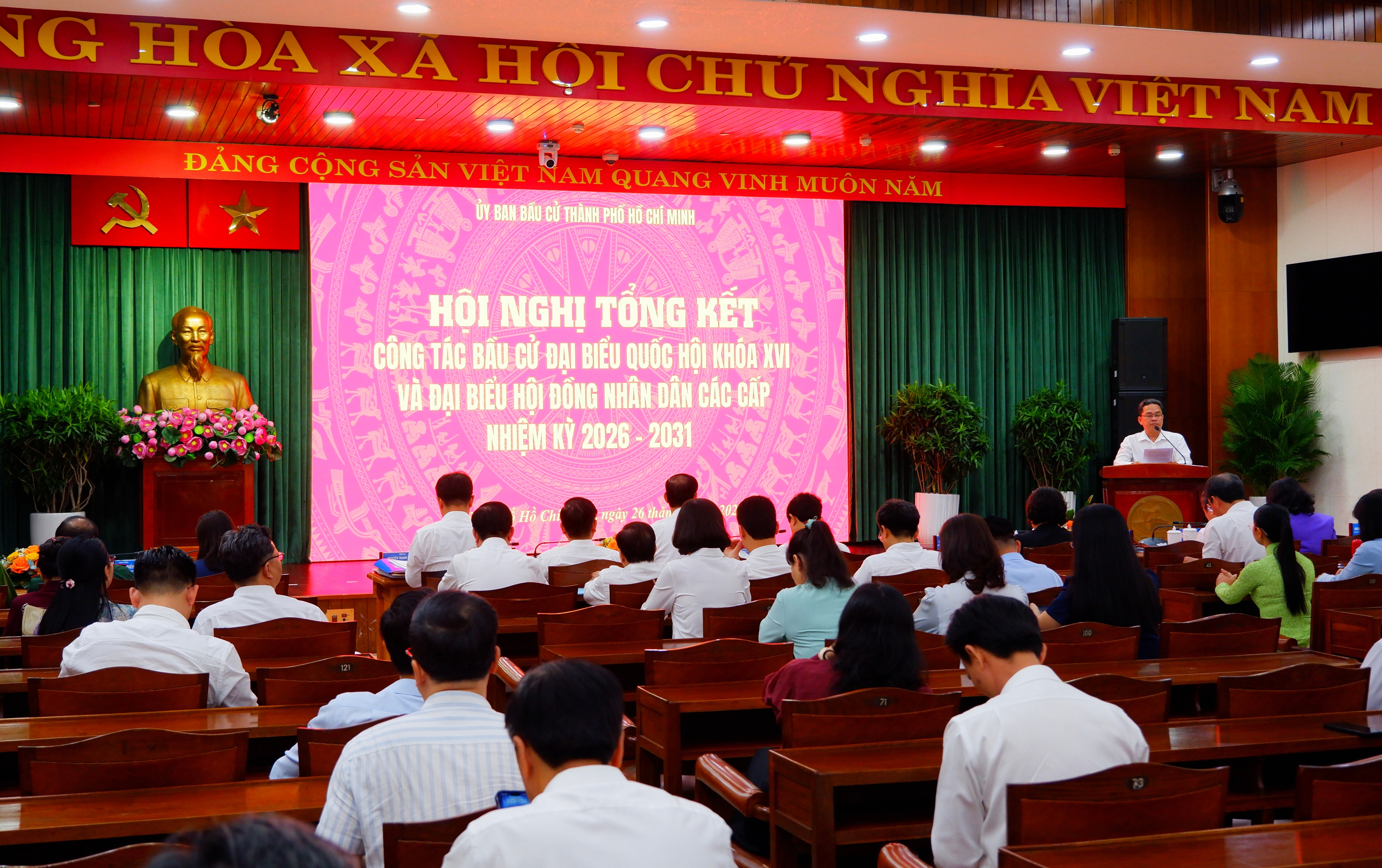 Sáng 26/3, Ủy ban Bầu cử TP. Hồ Chí Minh tổ chức Hội nghị tổng kết công tác bầu cử ĐBQH khóa XVI và ĐB HĐND TP. Hồ Chí Minh các cấp, nhiệm kỳ 2026-2031.