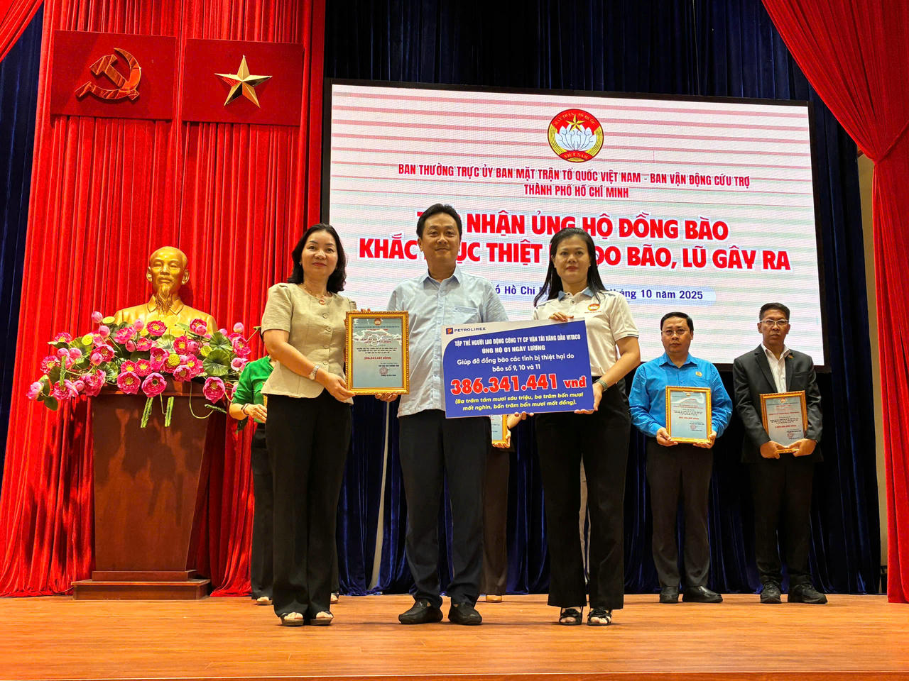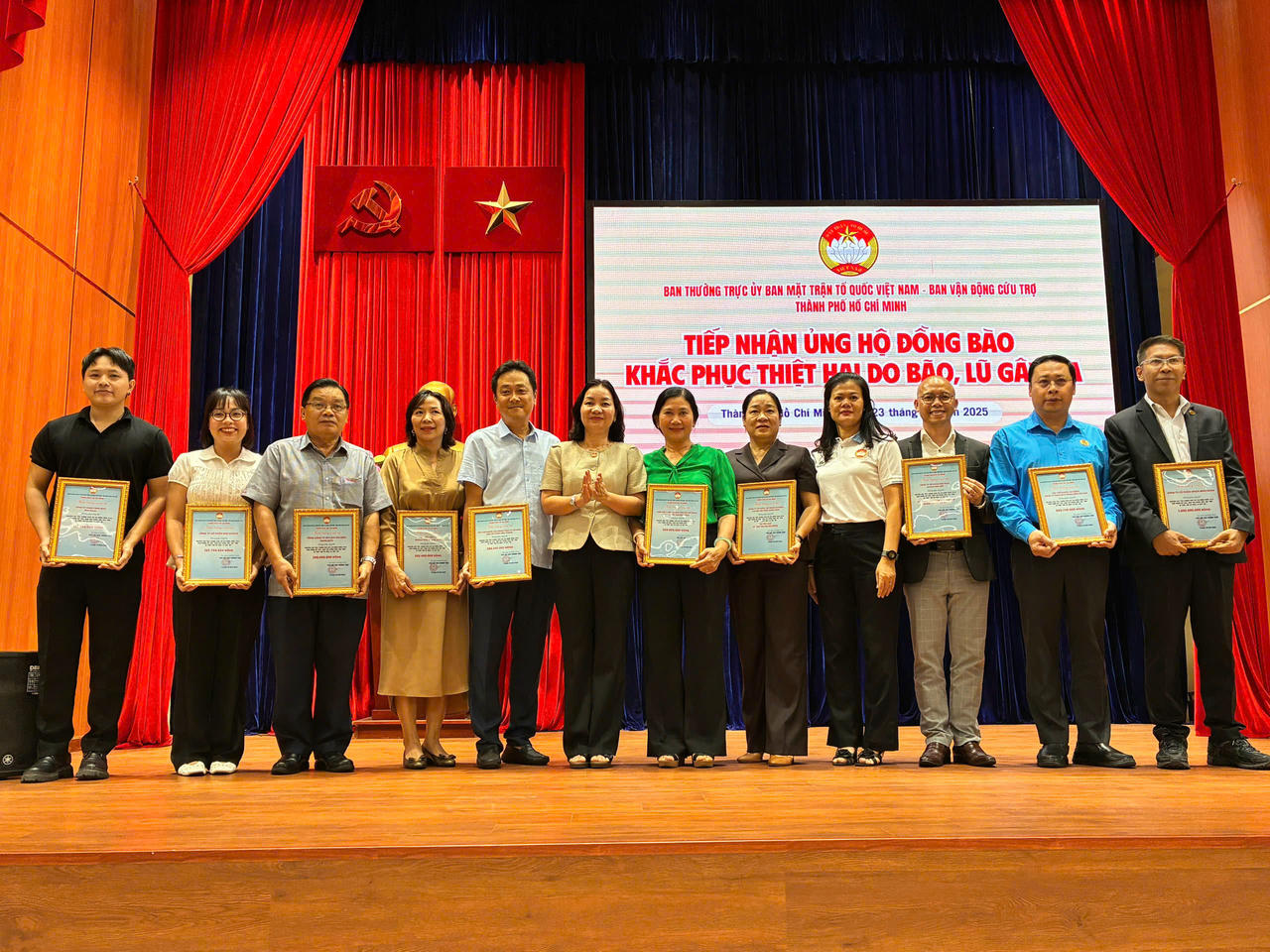 Thống kê của Ủy ban Mặt trận Tổ quốc Việt Nam TP Hồ Chí Minh, tổng lũy kế, tính đến ngày 21/10/2025, Ban Vận động Cứu trợ thành phố đã tiếp nhận 13.567 lượt ủng hộ với số tiền trên 145 tỉ đồng và hàng hóa là hơn 10 nghìn túi thuốc gia đình, 50 tấn gạo, 50 tấn hàng hóa nhu yếu phẩm và sản phẩm chăm sóc cá nhân, tổng trị giá hơn 3 tỉ đồng.