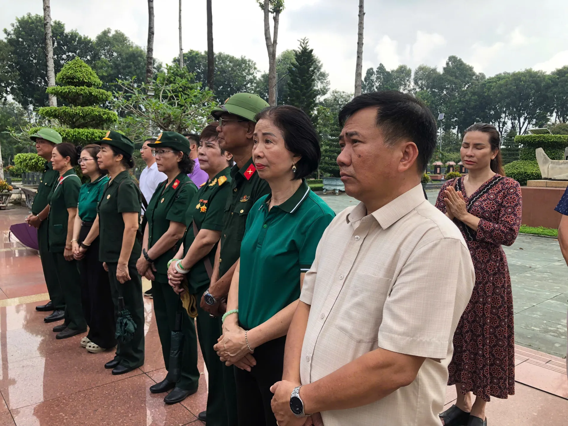 Cán bộ Văn phòng phía Nam – Hội Hỗ trợ gia đình liệt sĩ Việt Nam cùng Sở Nội vụ TP Hồ Chí Minh và tỉnh Nghệ An nghiêng mình trước anh linh liệt sĩ Nguyễn Hữu Trung. Ảnh: Tân Tiến