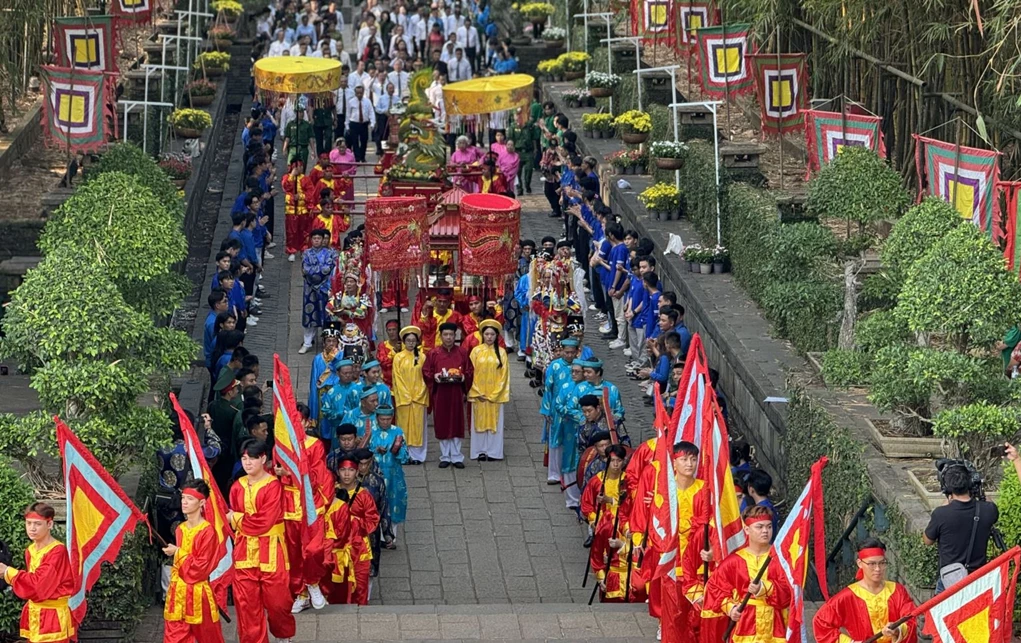 Lãnh đạo thành phố và nhân dân tham gia lễ rước kiệu tại Lễ giỗ Tổ Hùng Vương.