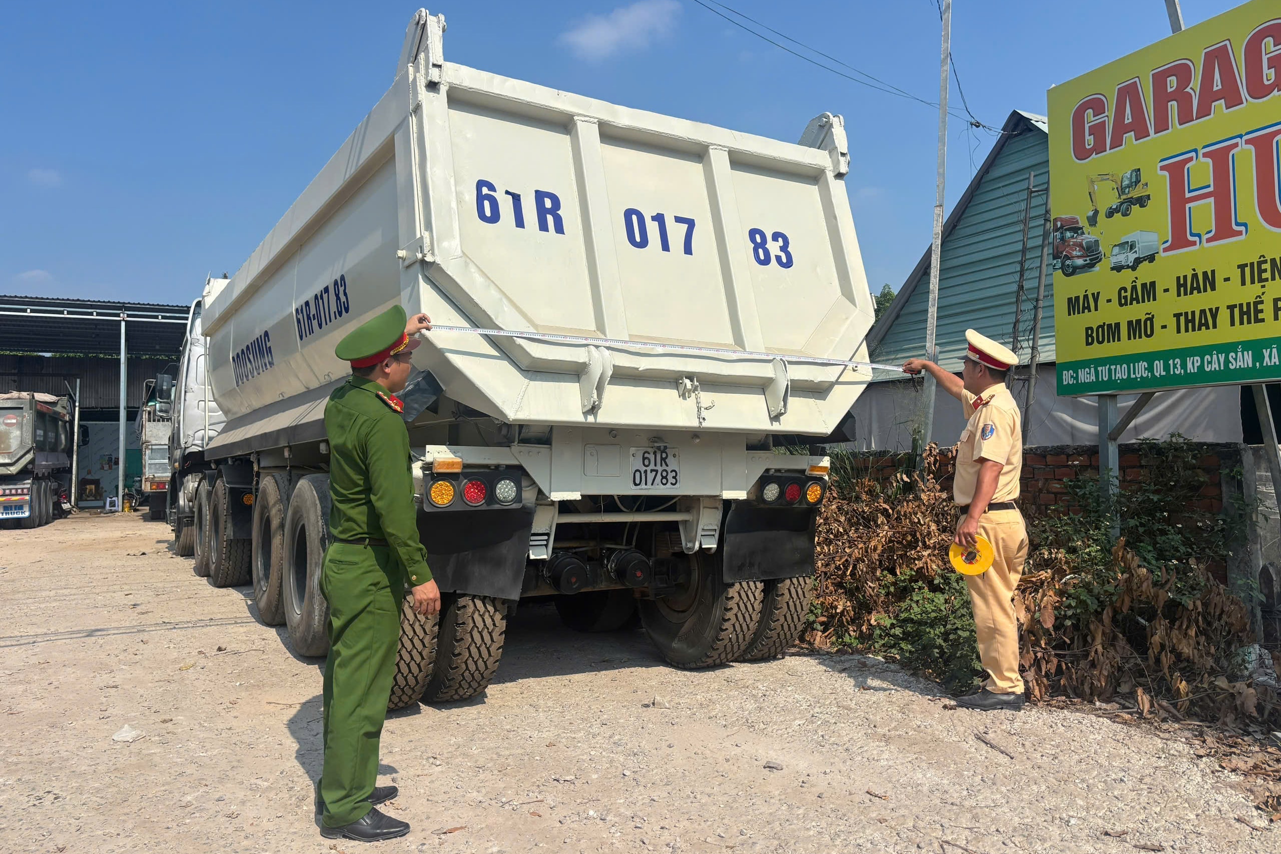 Lực lượng chức năng cũng kiểm tra thực tế kích thước thùng xe, vị trí lắp biển số, hệ thống còi, đèn, niên hạn sử dụng, qua đó phát hiện và xử lý nghiêm các hành vi vi phạm như cơi nới thùng xe, hoán cải phương tiện, lắp biển số không đúng quy định hoặc thay đổi kết cấu kỹ thuật trái phép.