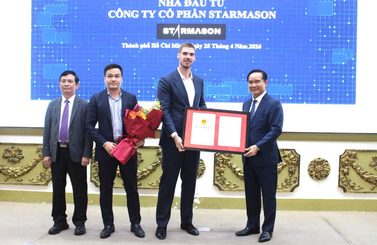 Ông Nguyễn Văn Được - Chủ tịch UBND TP Hồ Chí Minh trao giấy chứng nhận cho Công ty Starmason. Ảnh: H.T