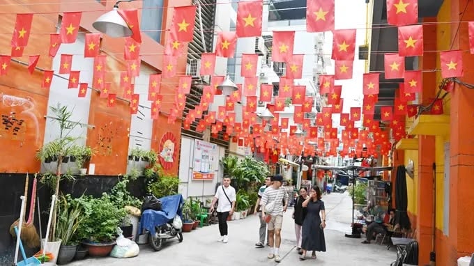 Người dân và chính quyền phường Bến Thành cùng trang trí tạo nét riêng trong không gian sống tại hẻm 100, khu phố 22. Ảnh: V.Minh.