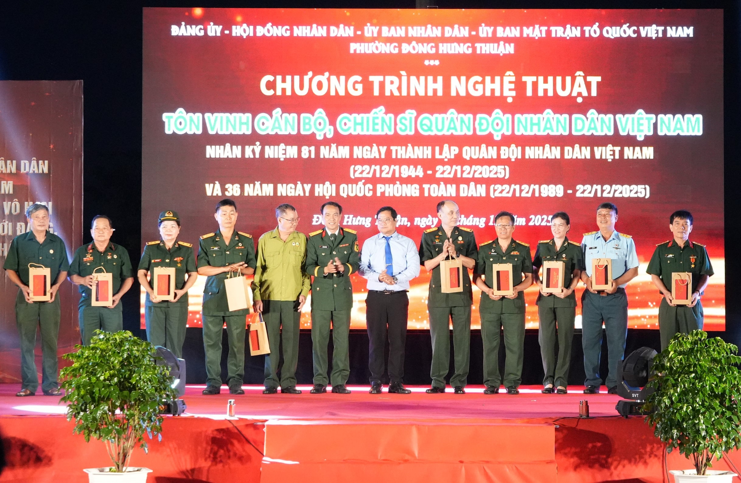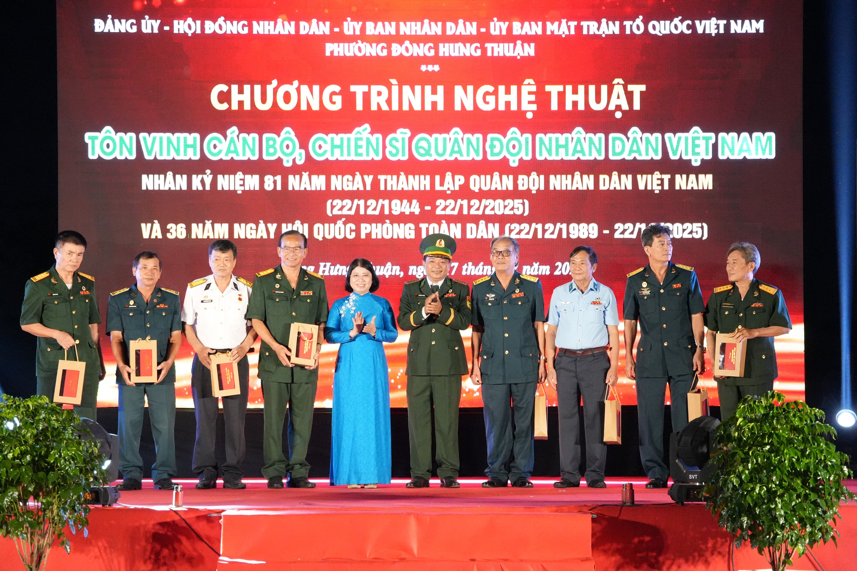 Nhân kỷ niệm 81 năm Ngày thành lập Quân đội nhân dân Việt Nam (22/12/1944 – 22/12/2025) và 36 năm Ngày hội Quốc phòng toàn dân (22/12/1989 – 22/12/2025), Đảng ủy – Hội đồng nhân dân – Ủy ban nhân dân – Ủy ban Mặt trận Tổ quốc Việt Nam phường Đông Hưng Thuận (TP. Hồ Chí Minh) đã tổ chức chương trình gặp mặt cán bộ quân đội nghỉ hưu trên địa bàn phường.