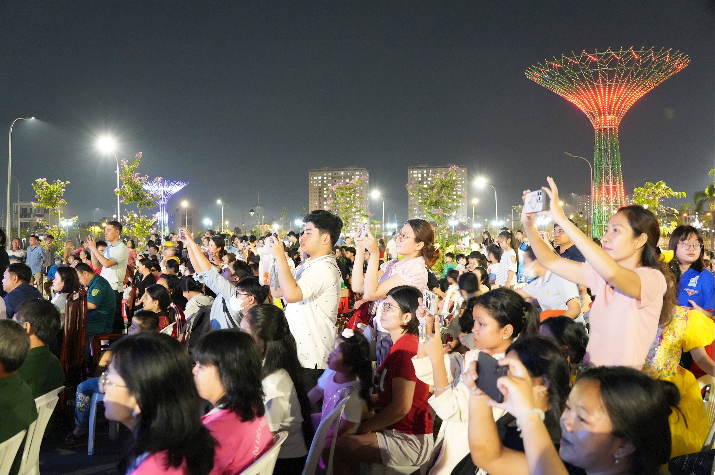 Tiết mục của ca sĩ Duyên Quỳnh với bản hít "Viết tiếp câu chuyện hòa bình" tại chương trình gặp mặt