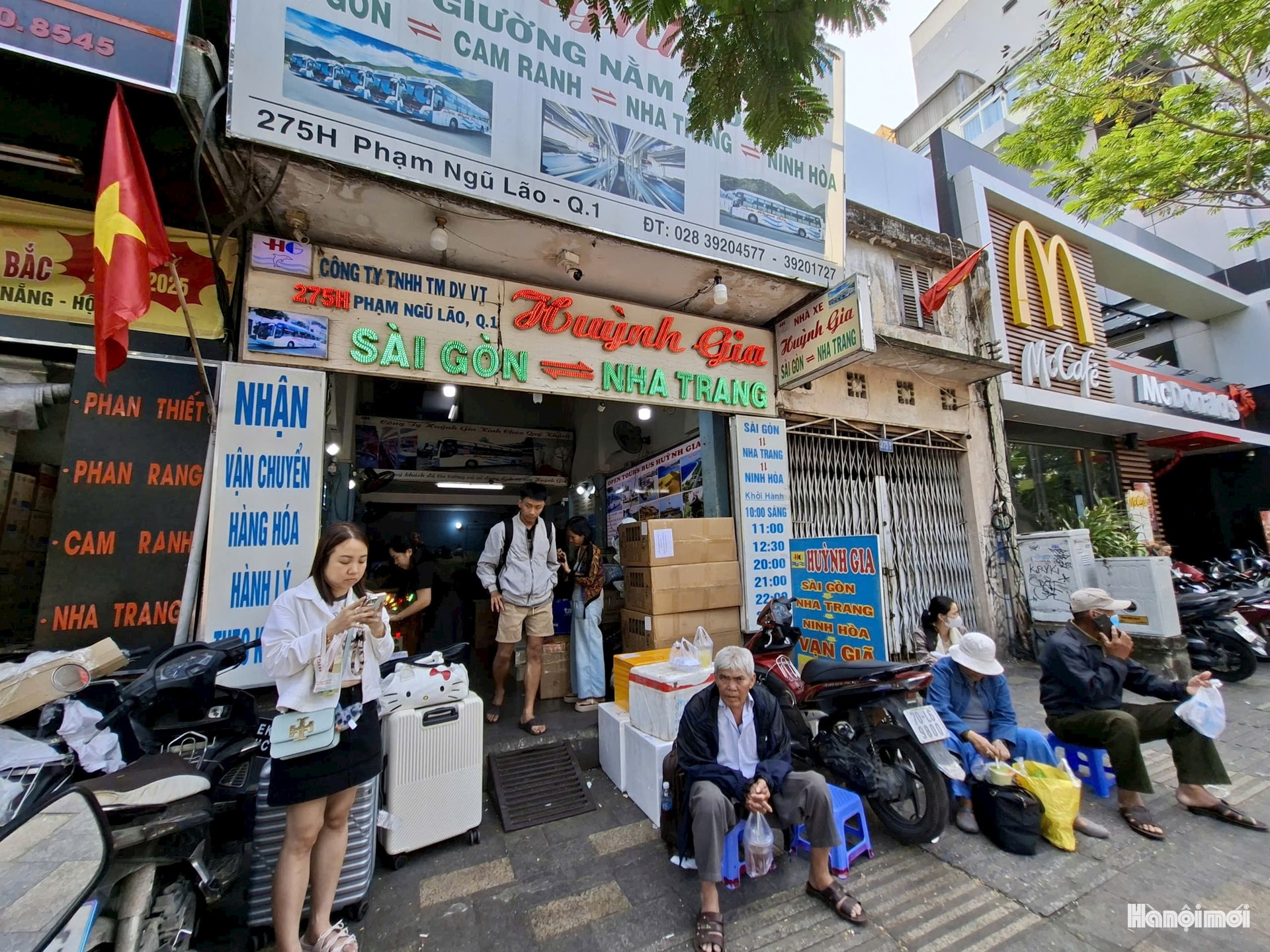 Tại khu vực đường Phạm Ngũ Lão, không ít xe núp bóng hình thức “hợp đồng du lịch” nhưng thực chất đón, trả khách như tuyến cố định. Ảnh: M.Tuấn