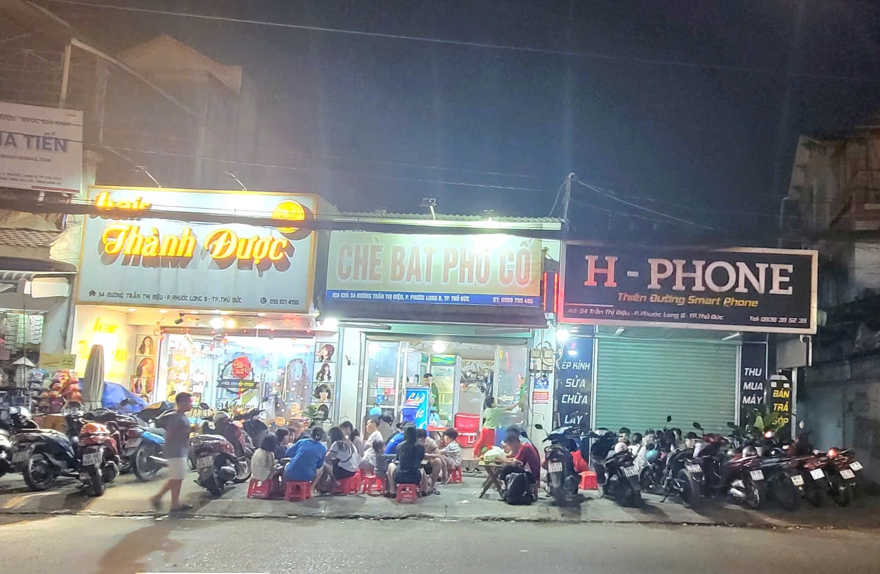 Tình trạng lấn chiếm vỉa hè để phục vụ cho mục đích riêng vẫn diễn ra công khai tại nhiều địa phương. Trong ảnh, một quán ăn trên đường Trần Thị Điệu, phường Phước Long để xe tràn kín hết vỉa hè. Ảnh: Quang Phương chụp tối 1/2/2026