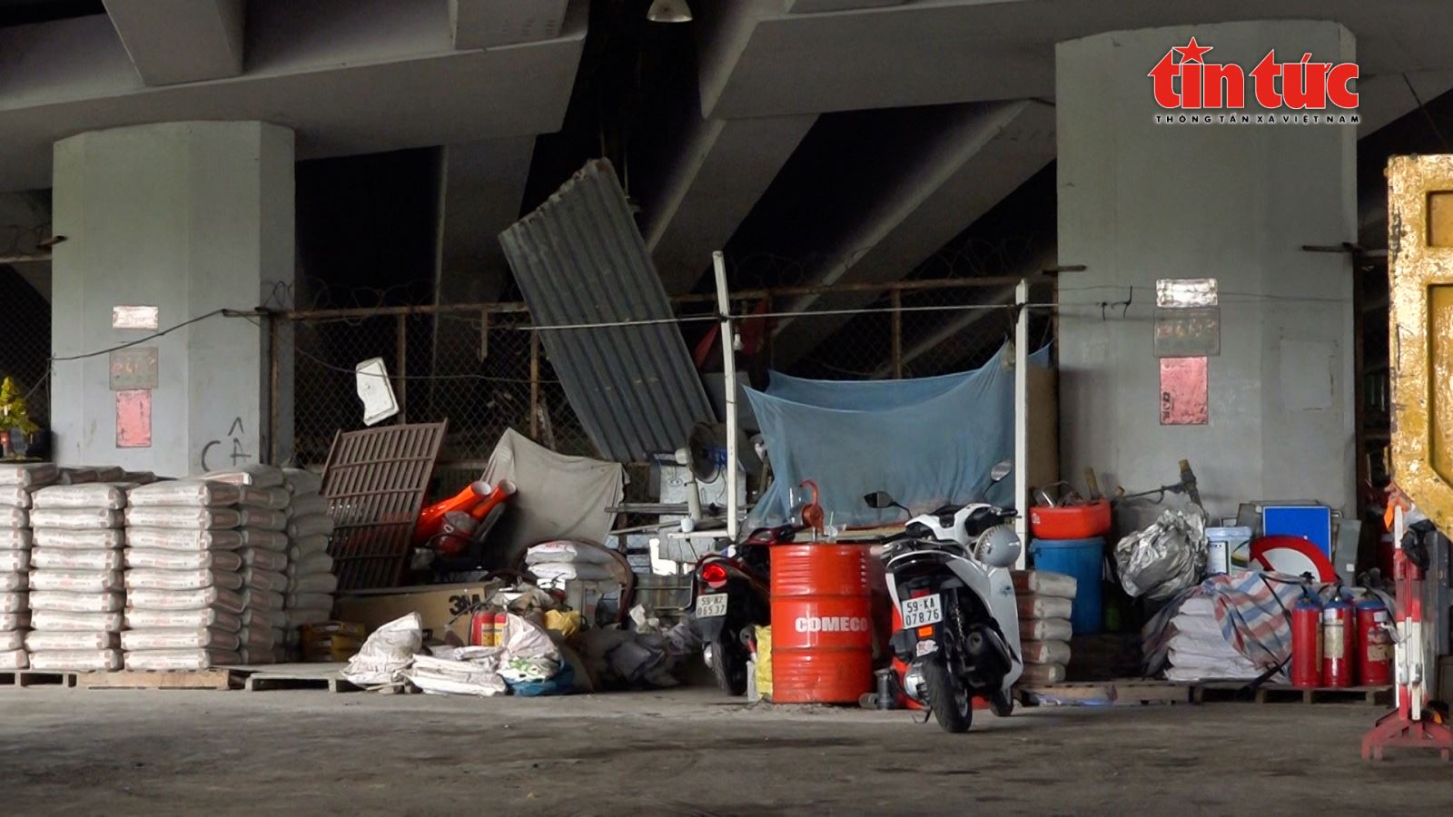 Tình trạng tương tự cũng diễn ra tại gầm cầu Phú Mỹ (phường Tân Thuận), khi lực lượng chức năng phát hiện một bãi xe và nhà kho hoạt động tự phát. Đáng chú ý, chính quyền địa phương vẫn chưa xác định được cá nhân hay tổ chức đứng ra điều hành hoạt động này.