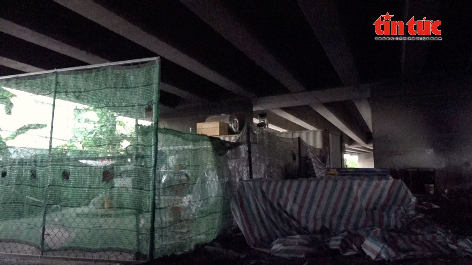 Nhiều gầm cầu trở thành nơi buôn bán, chỗ đỗ xe và làm kho chứa.