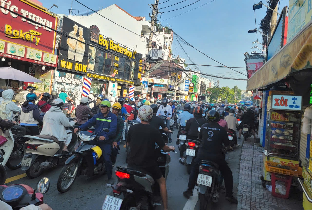 Ùn tắc giao thông cục bộ tại các nút giao thông trên đường Mai Chí Thọ (khu vực TP. Thủ Đức cũ). Ảnh: Quang Phương