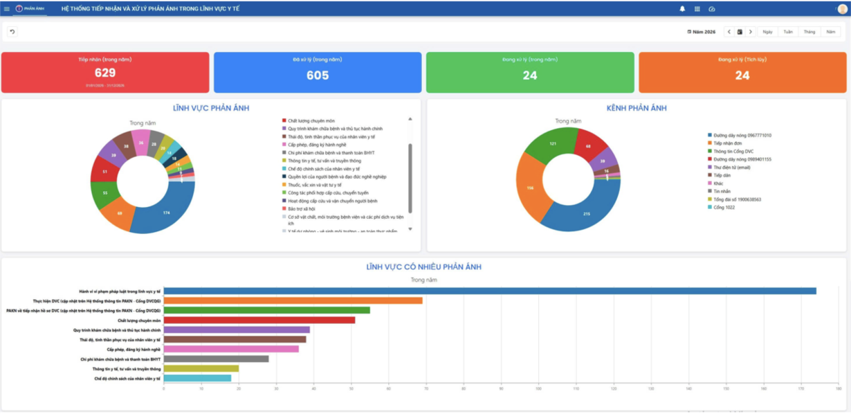 Dashboard của hệ thống tiếp nhận và xử lý phản ánh của người dân trong lĩnh vực y tế
