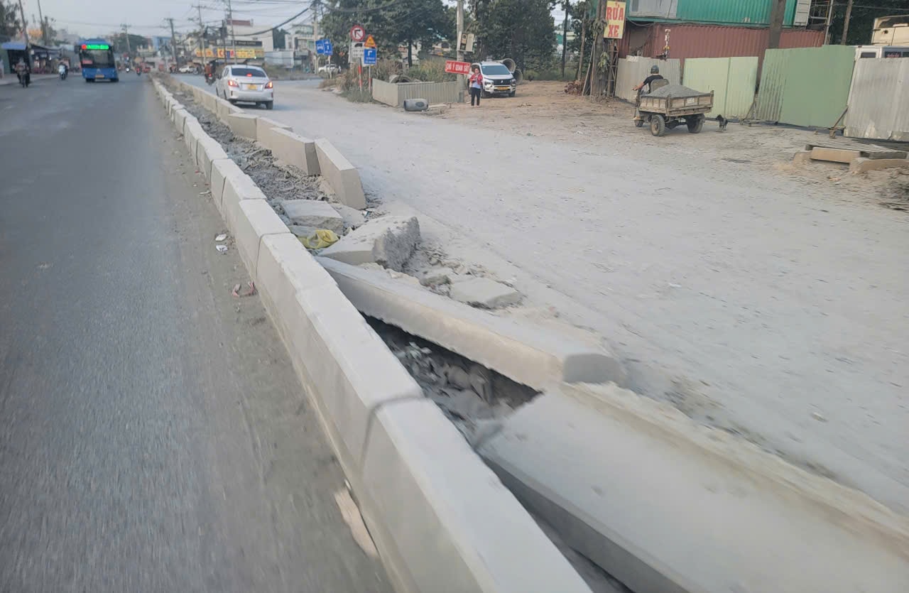 Dải phân cách đổ ngã. Ảnh: Quang Phương