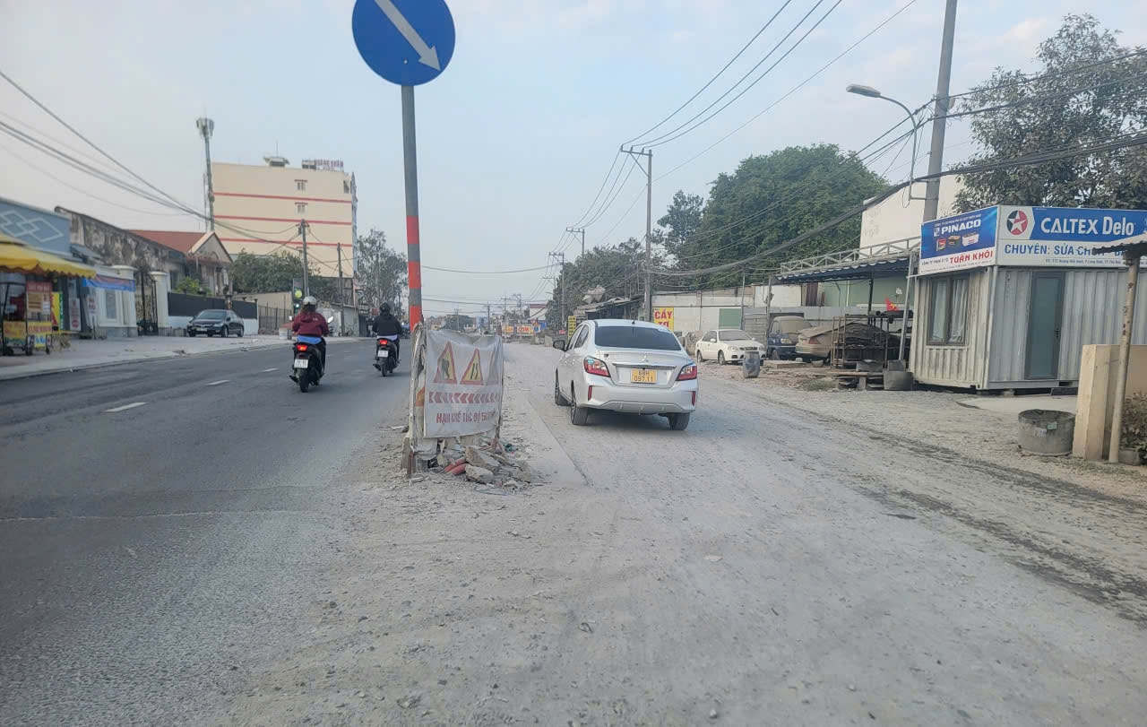Đường Hoàng Hữu Nam đang thi công dang dở, một bên đã trải nhựa, một bên đang dang dở. Ảnh: Quang Phương